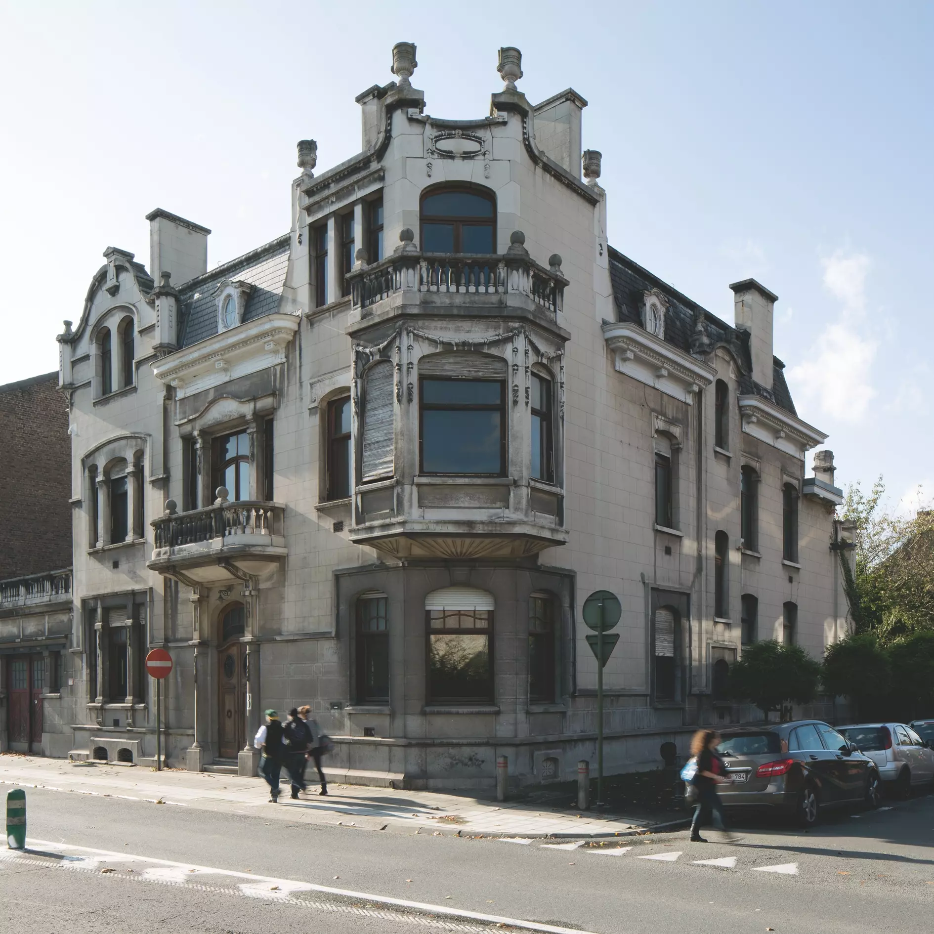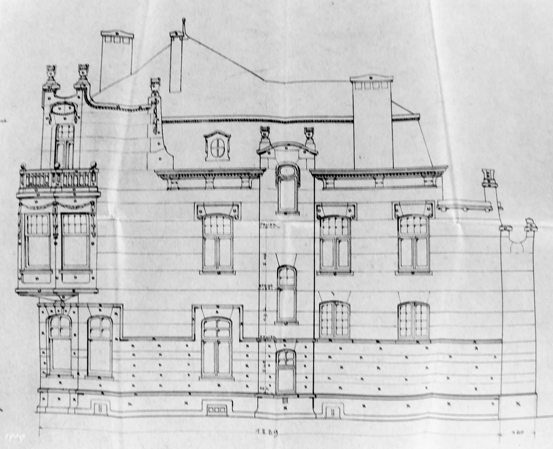 sur une parcelle d'angle, l'architecte bruxellois – figure incontournable de l'Art nouveau, élève de Paul Hankar et d'Alban Chambon, auteur des célèbres cinémas Pathé en Belgique – érige ce vaste hôtel de maître pour un ingénieur montois, recourant au béton armé pour le plancher sur cave.