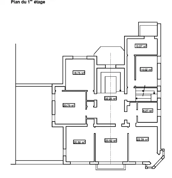 À l'intérieur, qui est pourvu de boiseries et décors originels, l'organisation fluide et lumineuse des espaces est éclairée autour du noyau du vestibule et de la cage d'escalier par un lanterneau arrière et l'imposte vitrée de la porte d'entrée.