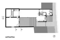 Le volume principal de l'extension est essentiel ; il est composé d'une structure métallique qui supporte une toiture plate et d'une façade vers le patio complètement vitrée. Cette solution renvoie aux expériences américaines des Case Study Houses, marquées par la continuité visuelle où les espaces dialoguent dans une rationalité rendue évidente par la clarté des dispositions. Par exemple, le carport participe à l'espace domestique tout en étant un lieu intermédiaire entre l'habitation et la rue.