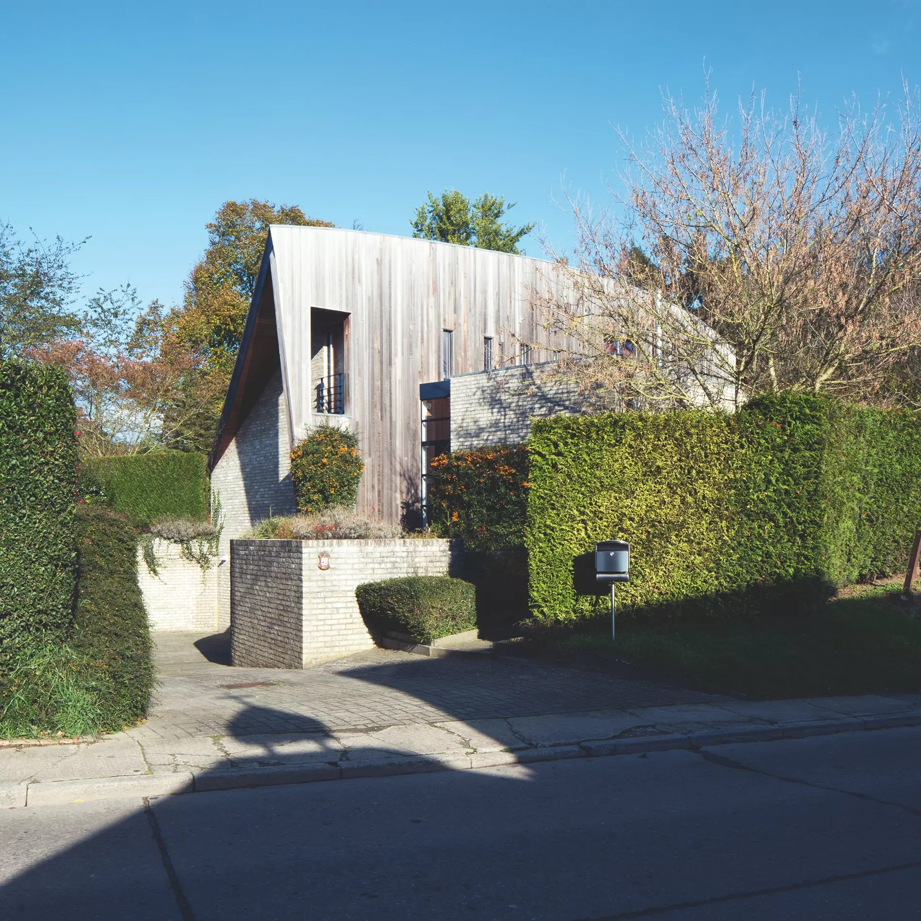Peu conventionnelle pour la région, la combinaison du cèdre et de la brique assure une intégration équilibrée dans le bâti avoisinant et le contexte très arboré du jardin.