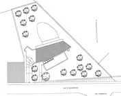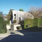 La maison projetée revisite et synthétise ces désirs. Les jardins, dessinés par les architectes, structurent aussi bien le terrain que l'habitation, créant une interaction entre l'intérieur et l'extérieur. L'entrée, mise à l'abri des regards par une végétation dense, s'intègre discrètement à la jonction d'une palissade en cèdre et d'un volume en briques anciennes.