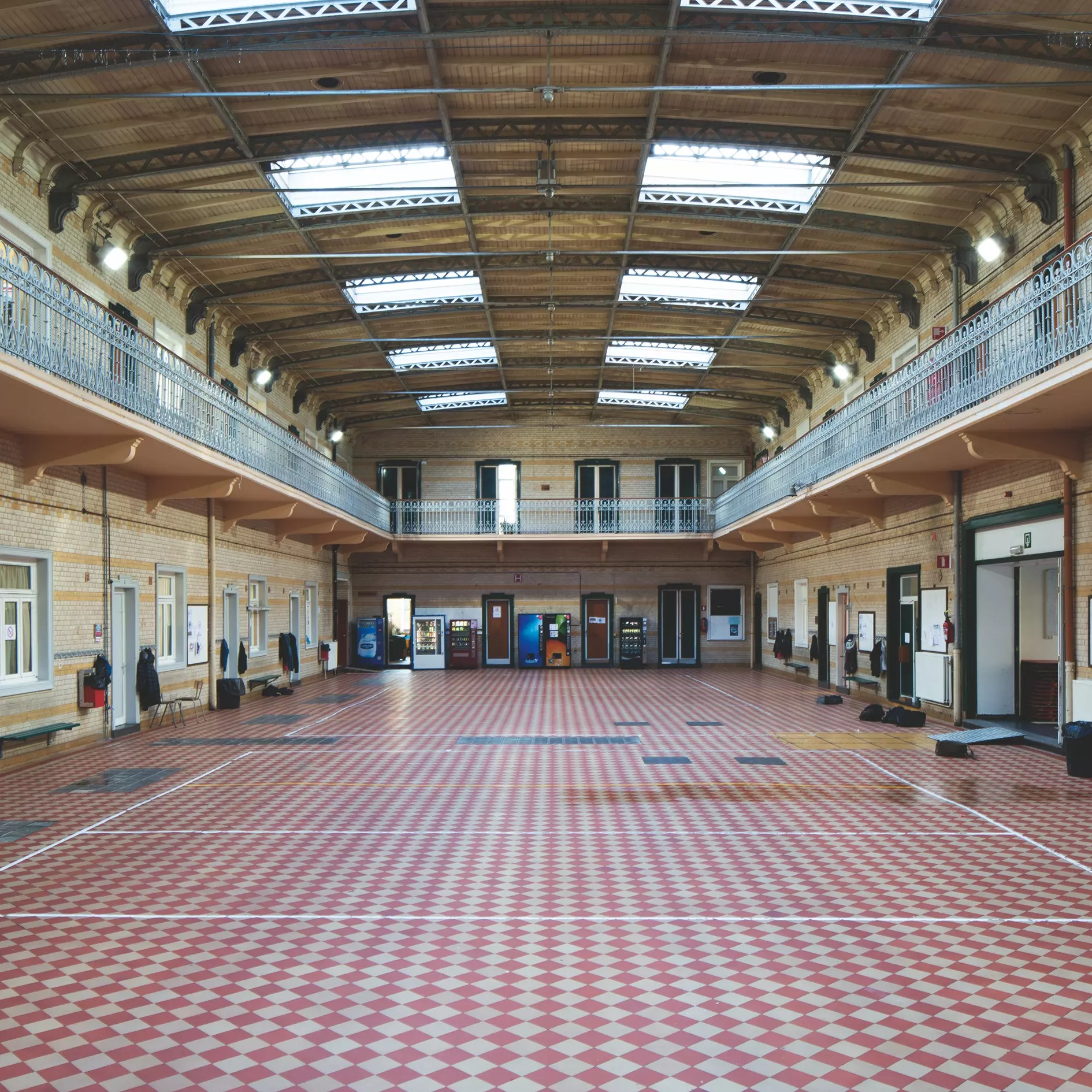 Construit en deux temps, l'Athénée est constitué de deux ailes parfaitement symétriques de part et d'autre d'un haut portique abritant une cage d'escalier monumentale.