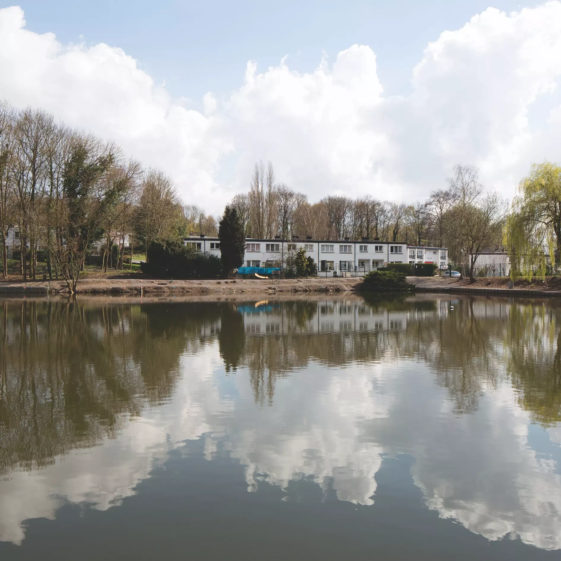 Conçus autour d'un étang de 1 ha et situés en bordure de la forêt de Mariemont, les immeubles d'habitation collectifs ou individuels jouissent d'un environnement exceptionnel. Seuls les ensembles modernistes à toit plat, peints en blanc, situés en limite des rues de la Solidarité, de l'Égalité, de l'Amitié et de la Croix-Rouge, ont conservé leurs qualités architecturales originales. Rehaussés au droit des entrées par des murs peints de couleurs vives (rouge, jaune, bleu), ils offrent aux habitants une meilleure identification de leur logement.
