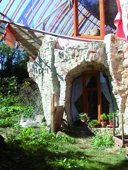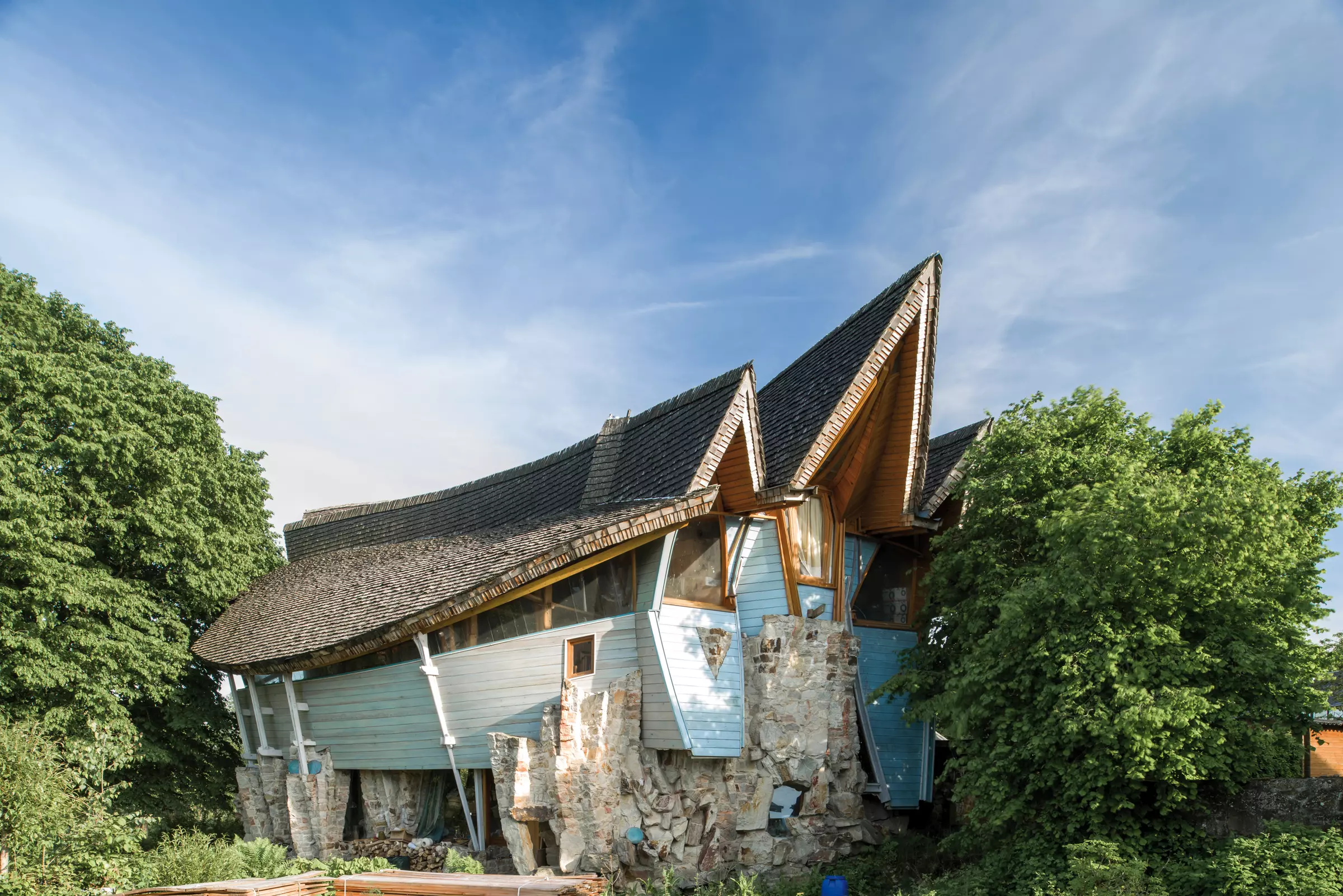 Entre grange et architecture-sculpture, l'habitation personnelle de l'architecte Henri Chaumont transcrit dans sa complexité formelle les impulsions issues de son environnement et la spontanéité créative permise par l'autoconstruction. Arrimée sur une crête au cœur de Mormont, elle adosse au centre du village un soubassement de pierre qui s'effiloche, se tord et se mue progressivement en une structure légère pour entamer un élan de projection vers l'arrière-plan paysager et le lever du soleil. La composition de la maison s'inspire des édifices ruraux aux murs épais surmontés d'une charpente en bois qu'elle réinterprète dans l'expression d'une assise massive et informe contenant des pièces voûtées en périphérie de la nef du séjour, couronnée d'un enchaînement de portiques menuisés. La complexité qui se dégage de la construction conjugue les esquisses intuitives au potentiel structurel et expressif des matériaux de construction issus de déchets de carrières et de scieries. Processus expérimental étendu sur plus de douze années de chantier, l'autoconstruction de cette maison naît de croquis vifs et spontanés que la mise en œuvre et l'expérimentation directe de la matière concrétisent, précisent et transcendent. Cette liberté formelle, indissociable du processus artisanal et sculptural de construction et du rapport sensible de l'édifice à son environnement, inscrit l'habitation dans la postérité du mouvement organique de fin de siècle dont l'ambassadeur liégeois, l'architecte Jacques Gillet, fut le professeur d'Henri Chaumont.