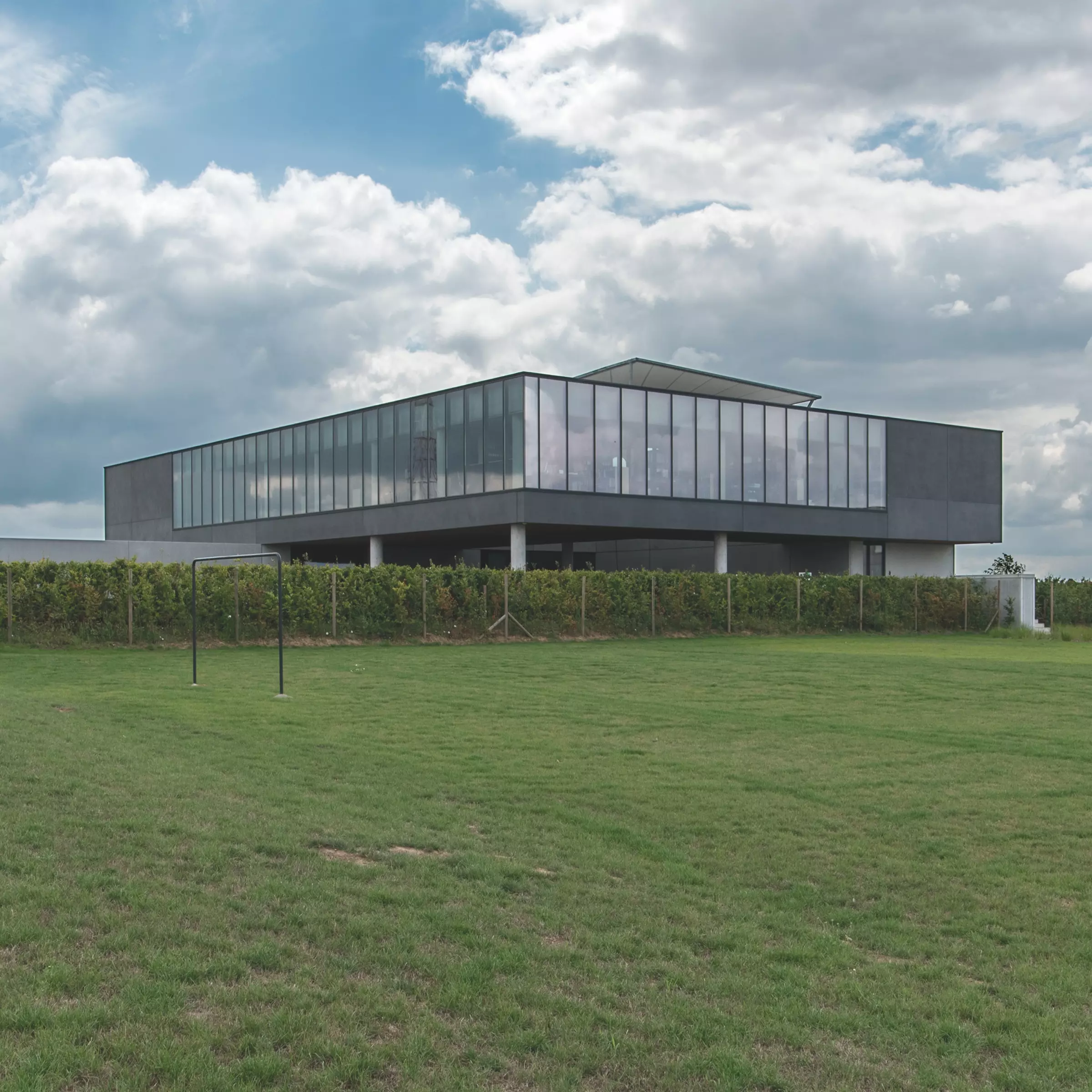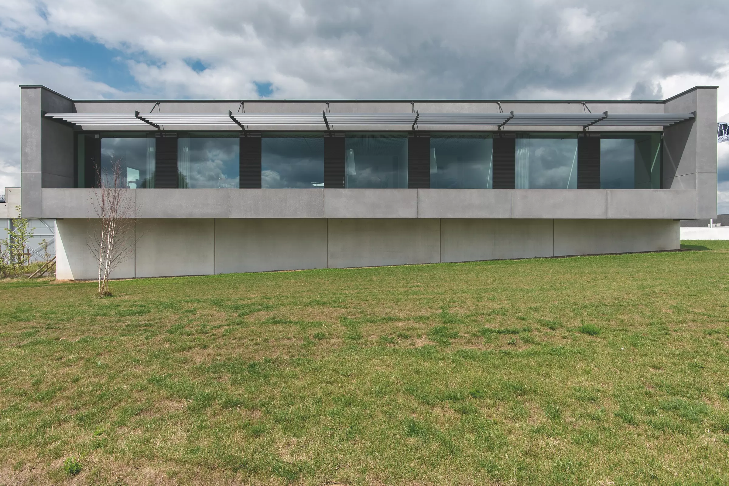 Pour cette importante agence, l'architecture devait être représentative de son savoir-faire en termes de conception spatiale, de confort et de techniques innovantes. La construction se résume à un système poteaux-poutres et des panneaux isolés préfabriqués. Le bâtiment tire une partie de son énergie de cellules photovoltaïques. Pour le chauffage et la ventilation, il utilise des sondages géothermiques ; une pompe à chaleur fournit l'eau chaude de chauffage en hiver et sert d'appoint en été.