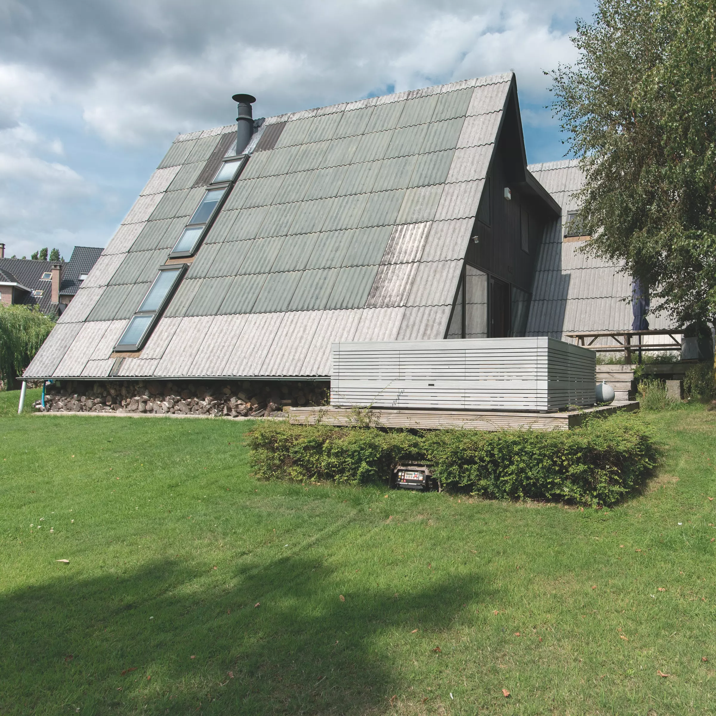 Cette habitation atypique se situe à l'avant-garde contemporaine d'une architecture écologiquement plus responsable. Elle est le fruit d'une recherche poussée qui traduit les aspects structurels, techniques et d'usages de notre temps en une construction simple, dont les espaces généreux sont baignés de lumière naturelle. La répartition astucieuse des espaces de vie, de service et de circulation la rend très flexible à l'évolution d'une famille. Partiellement autoconstruite, ses charpentes sont orientées pour capter l'énergie solaire.