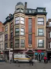 Architecte très actif à Namur, René Collin réalise ici un immeuble de style Art déco. L'angle est pleinement exploité grâce à un bow-window de plan semi-hexagonal présent sur trois niveaux et terminé par un étage en attique aux volumes de toiture dégressifs, marquant la verticalité de l'immeuble. Celle-ci est encore soulignée par le traitement uniforme des travées latérales ainsi que par la haute verrière qui éclaire la cage d'escalier. Le jeu volumétrique prend ici le dessus sur l'ornementation qui s'amenuise.