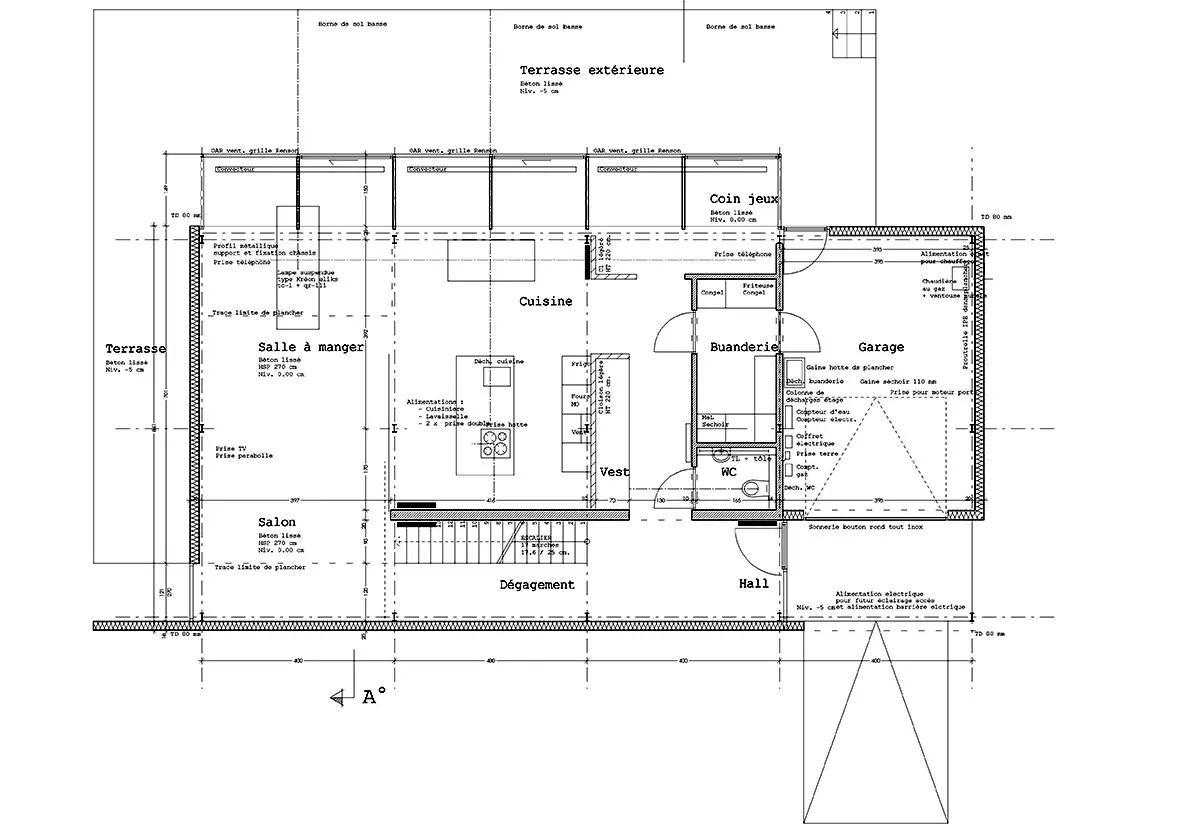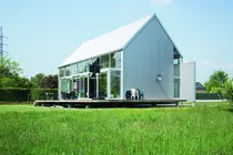Au-delà des matériaux, la construction se démarque par son caractère affirmé et épuré : la façade avant est très fermée, tandis que l'arrière est généreusement ouvert. Les pilotis confèrent à l'ensemble un côté aérien qui contribue à son intégration au site : le bâtiment semble simplement posé sur le terrain.