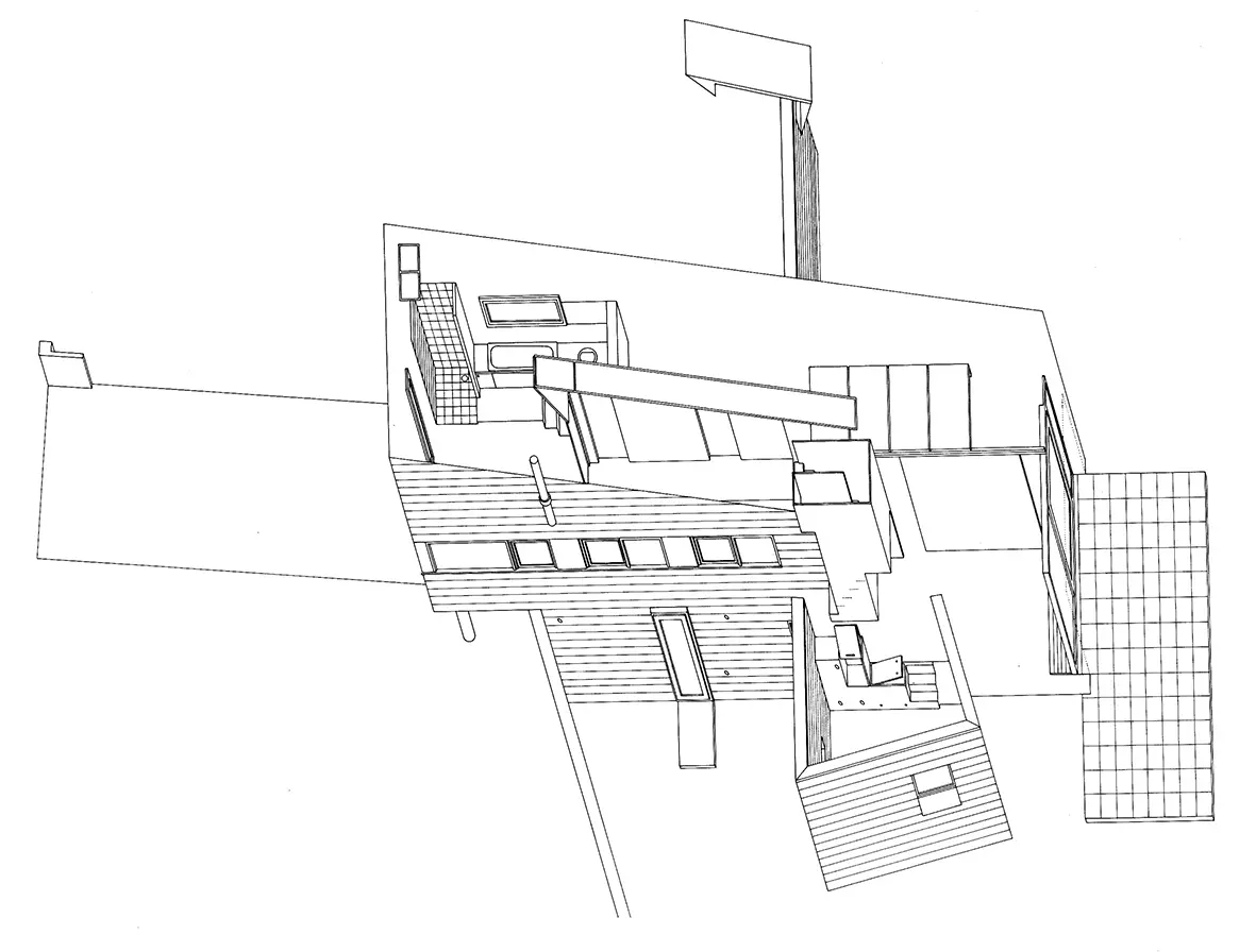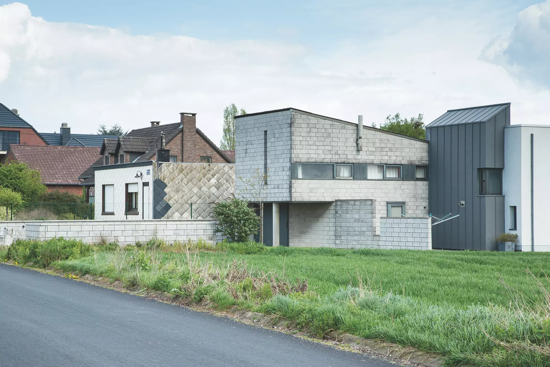 Pour concrétiser le projet, l'architecte a expérimenté les limites : celles du budget, de l'environnement, du terrain. Il a tenu compte de l'orientation, du bâti pavillonnaire et arboré du quartier, ainsi que de l'étroitesse du site. Le volume de parpaing, matériau choisi pour sa capacité à retenir et à fixer les végétations moussues, est couvert d'une toiture à un versant. Il intègre un garage, qui se glisse sous la zone de nuit. Le séjour s'encastre en travers du volume principal, en rupture.