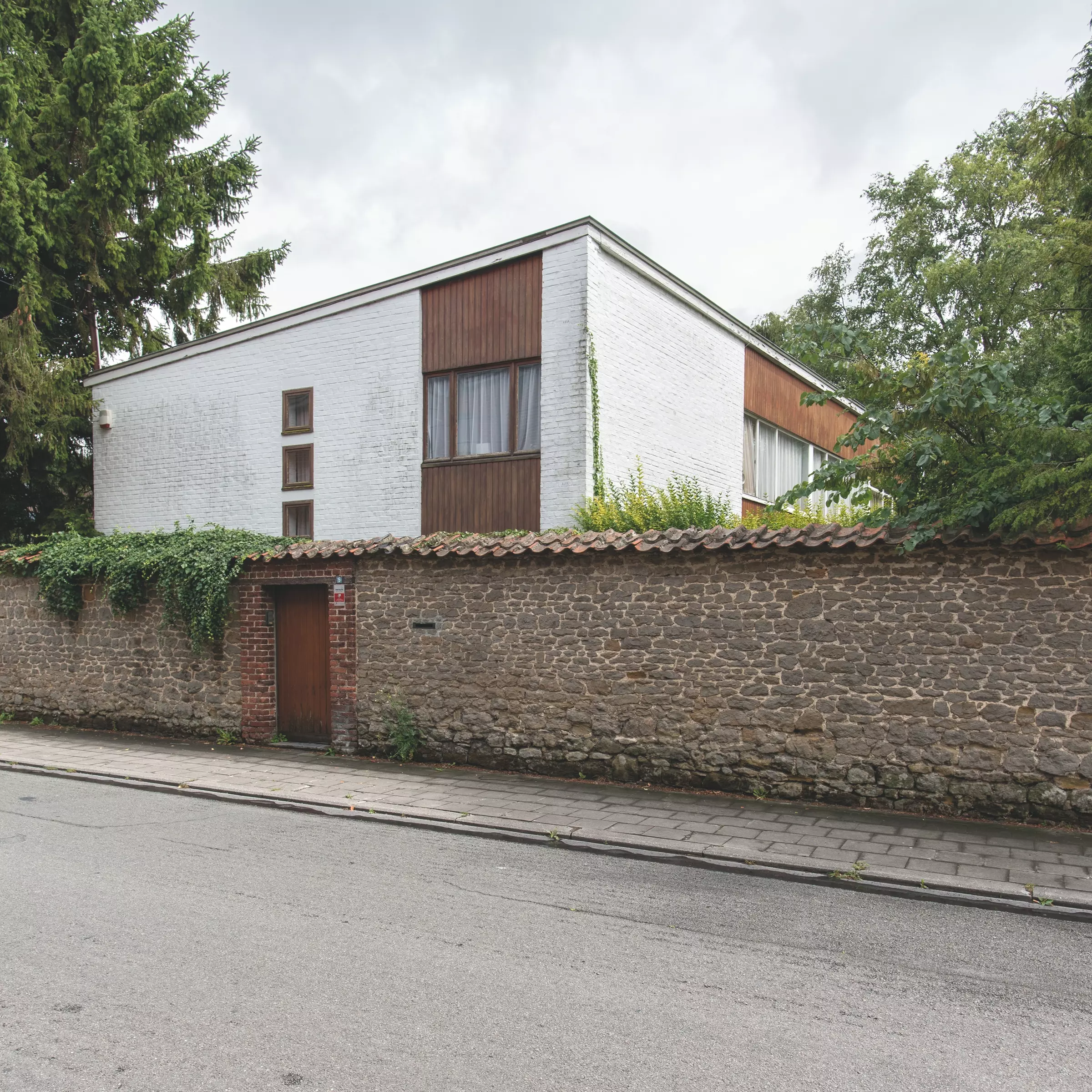 Clôturée par un mur en moellons de grès, cette habitation est une commande du peintre Roger Dudant. Elle s'inscrit pleinement dans le modernisme des années 1960 et rappelle à certains égards l'écriture de Roger Bastin et Jacques Dupuis. Une partie de l'édifice accueille l'atelier de l'artiste, ce qui influence l'organisation spatiale. De larges espaces sont dégagés pour les pièces de travail ou d'étude et d'autres pour les lieux de stockage. Le verre est mis en œuvre de manière à disposer d'une bonne luminosité. Extérieurement, la volumétrie est simplifiée au maximum (parement de brique blanche) et les éléments décoratifs sont totalement éliminés. La toiture suit une faible pente, que soulignent les façades composées selon une dominante horizontale. Celle-ci est néanmoins contrebalancée par les panneautages de bois encadrant les baies vitrées.