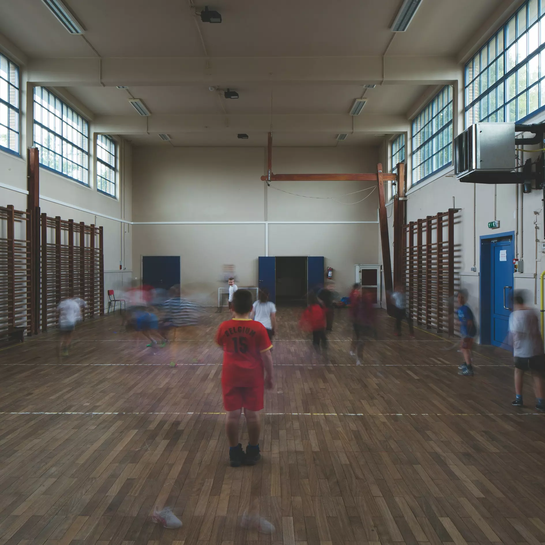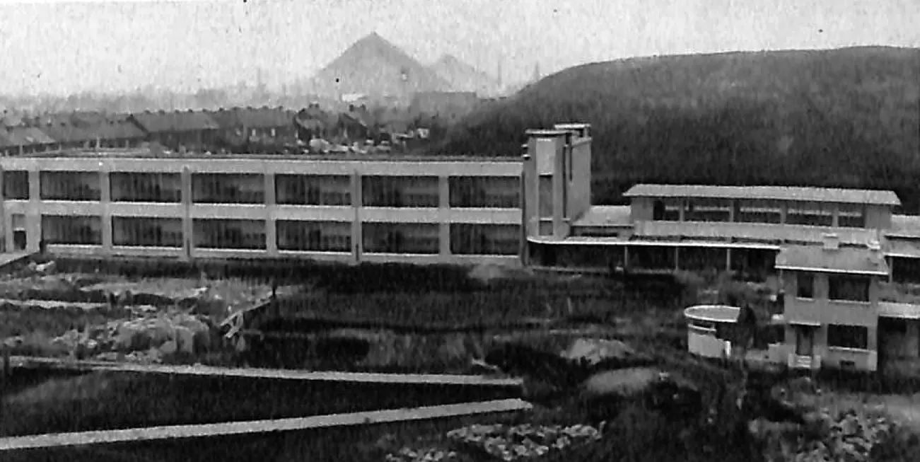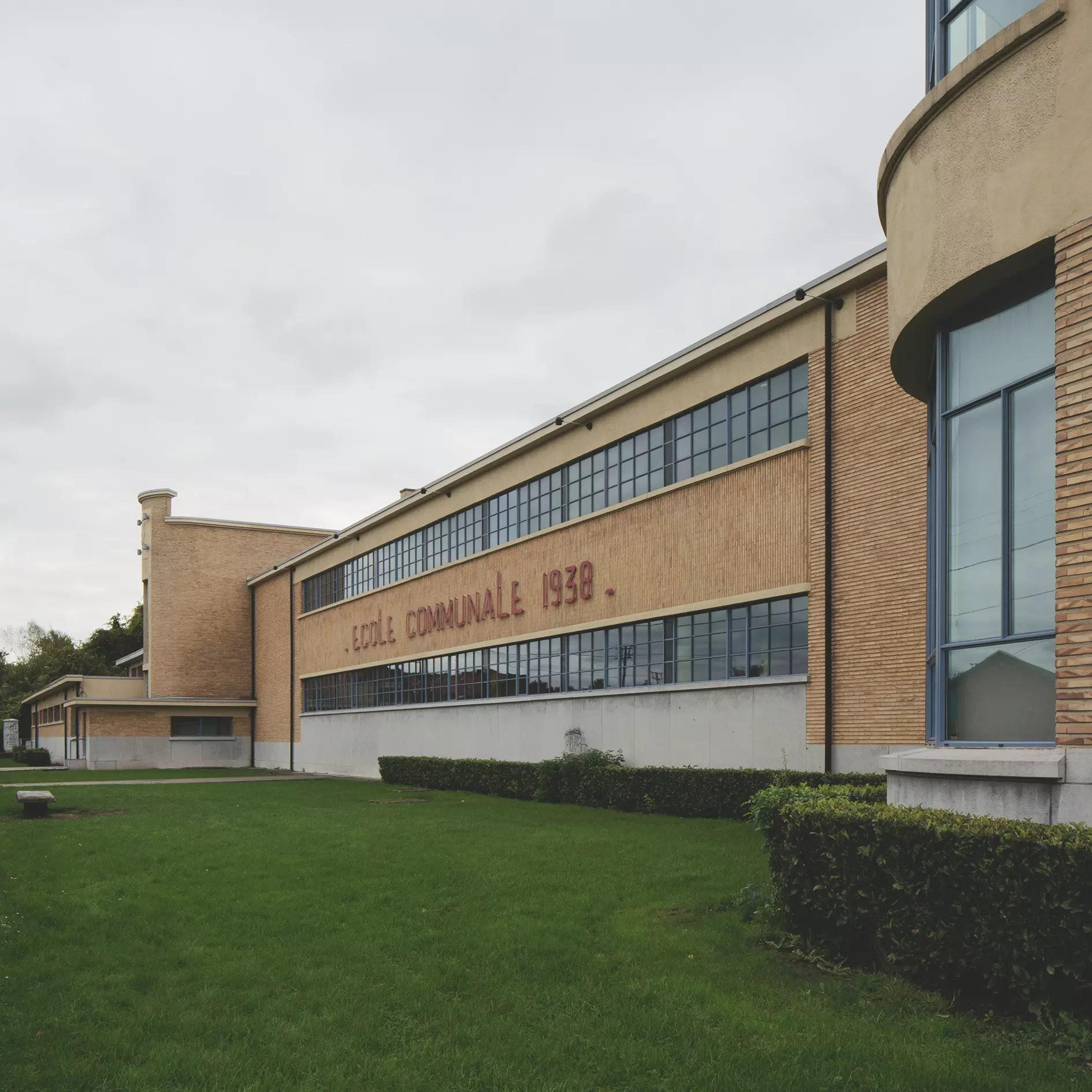 L'école est réalisée dans le cadre de l'important plan d'investissement mené par l'Office de redressement économique (OREC) à Quaregnon, auquel le rédacteur en chef de la revue Bâtir, Pierre-Louis Flouquet, consacre un long article.