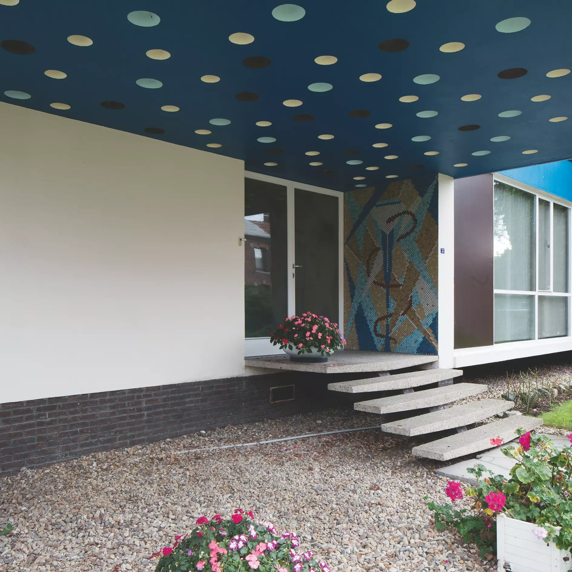 Jouxtant l'entrée, une mosaïque colorée représentant le bâton d'Asclépios – symbole de la médecine – annonce la profession de son propriétaire.