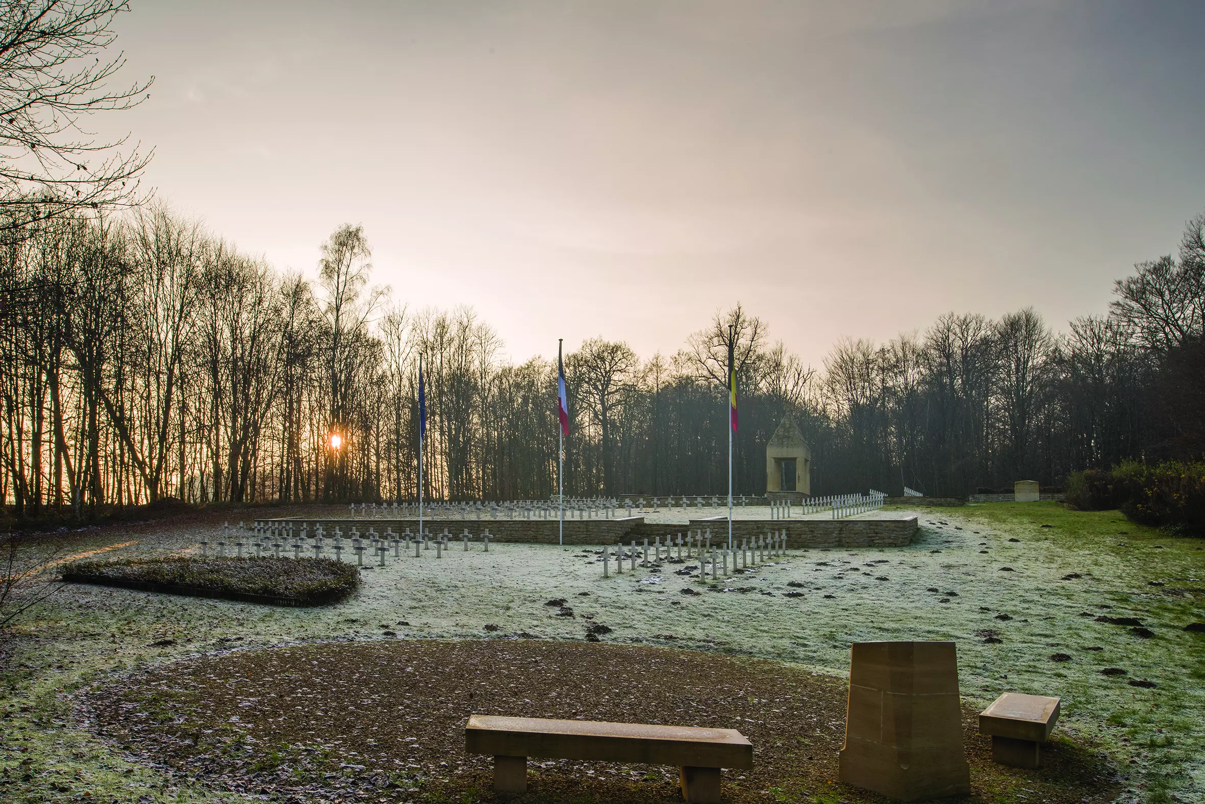 À quelque 900 m de là vers le nord, au bord de la route qui relie Rossignol à Neufchâteau, côté est, se situe le cimetière militaire français du Plateau, dont l'accès aux huit cent septante-quatre tombes implantées en cercle parfait dans la forêt se fait via un porche en schiste et une petite esplanade emmurée de forme carrée.