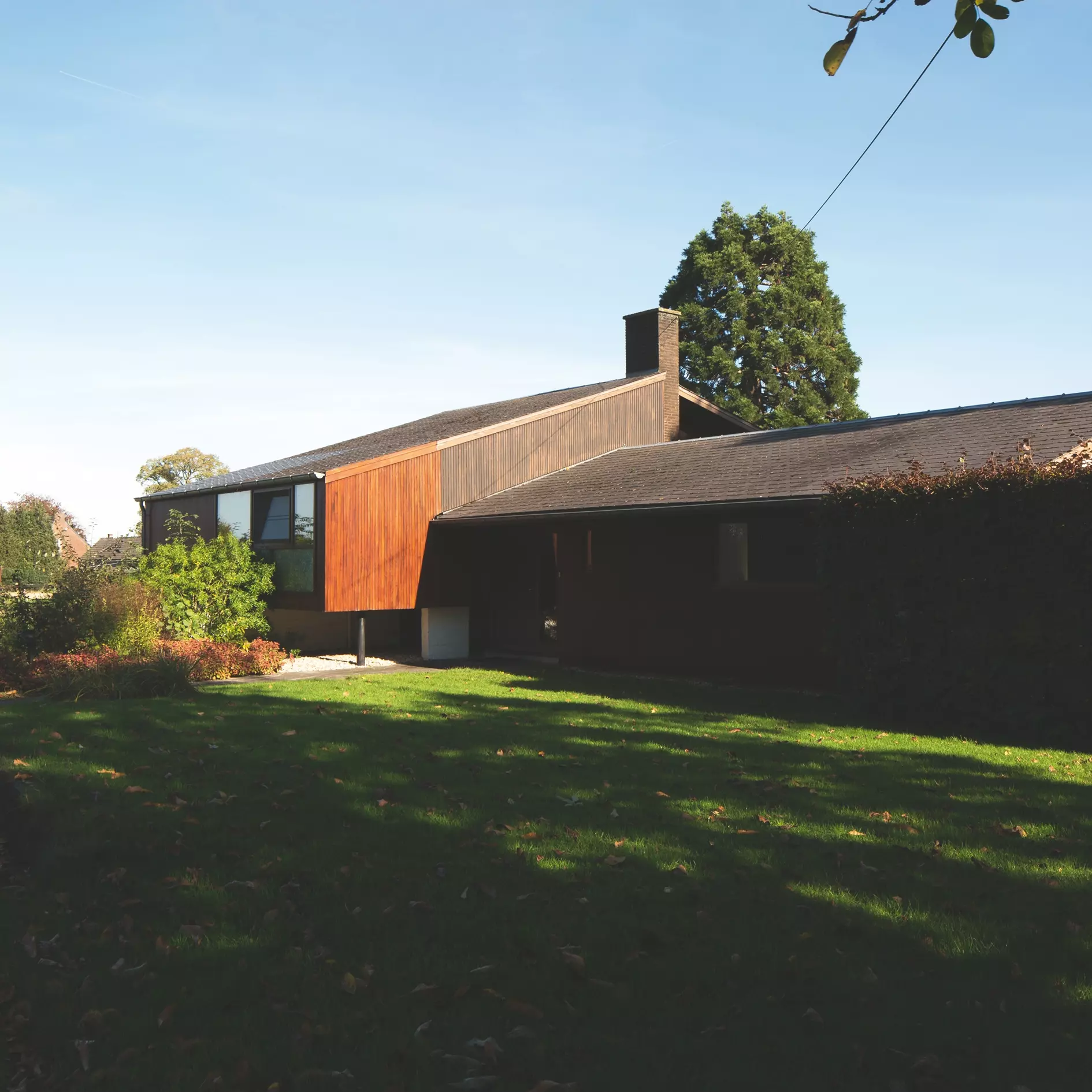 Le parti adopté montre un jeu de parois orthogonales qui se décalent pour dégager les vues vers le paysage et profiter des nombreuses arrivées de lumière. Les parements extérieurs sont réalisés en planches de bois alternées avec des surfaces en briques peintes en blanc.