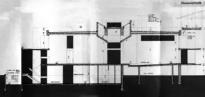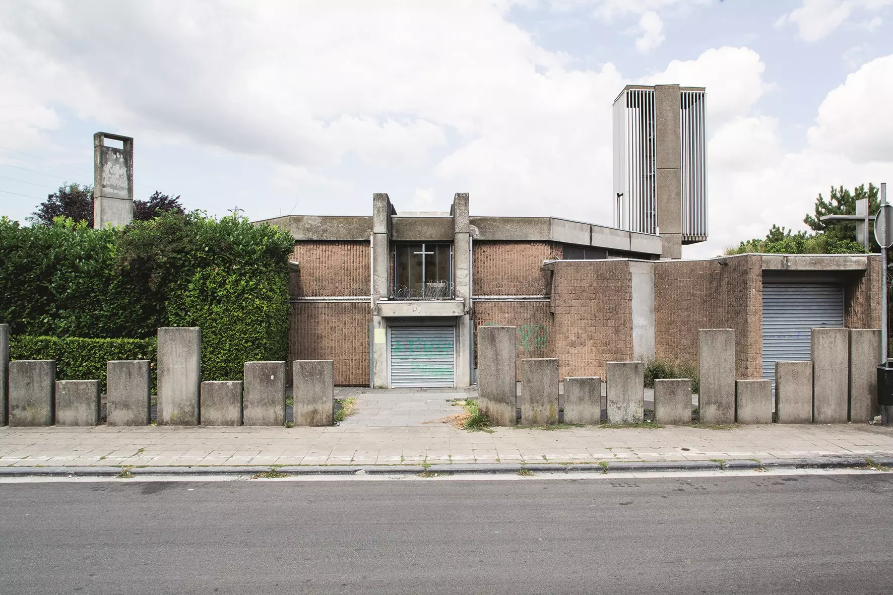 Vues du ciel, elles dessinent une croix centrée sur l'octogone de la nef. Aux extrémités de cette croix prennent place des confessionnaux et des espaces de circulation (entrée, escaliers). L'aspect brut de décoffrage des éléments en béton (dalles, poutres et colonnes) tout comme les profilés métalliques qui forment la grande croix du chœur, mais aussi les supports des sièges ou du lutrin, rappellent que l'on se trouve dans une région industrielle.