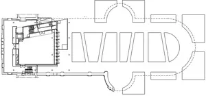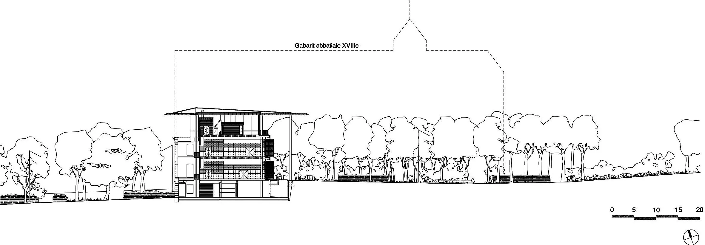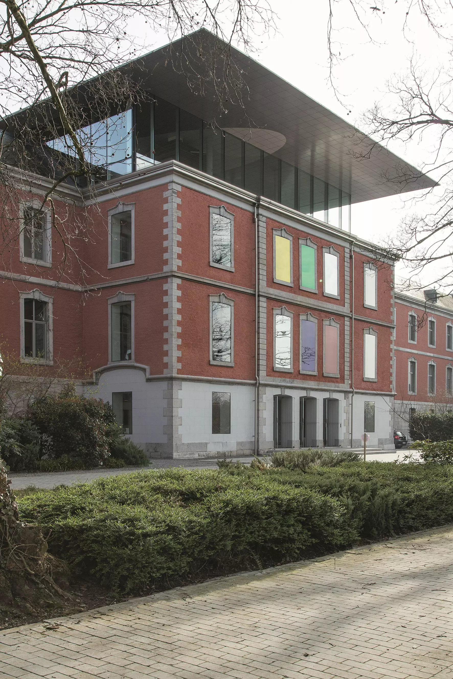 En façade avant, la matière s'oppose à la transparence, l'ornementation à la réduction. Le fronton est décapité et les châssis traditionnels en battée font place à des surfaces vitrées affleurantes et polychromes, qui sont l'œuvre de l'artiste J. Glibert. L'intérieur existant est phagocyté par un nouveau volume en bois exotique qui accueille les nouvelles salles de séminaire. Le parcours s'achève sous une toiture légère où l'espace, totalement libre, se prolonge dans la campagne sérésienne.