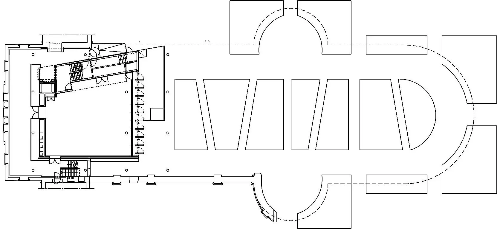 Au XIXe siècle, un corps de logis y est reconstruit. Dans ses proportions et motifs, sa façade est une imitation des ailes latérales. À cet endroit, l'intervention de Daniel Dethier et Jean Dehareng, lauréats du marché d'architecture en 1996, souligne l'axe de l'édifice disparu et affirme le statut pastiche du bâtiment, jouant sur l'ironie d'une imitation longtemps tenue pour authentique.