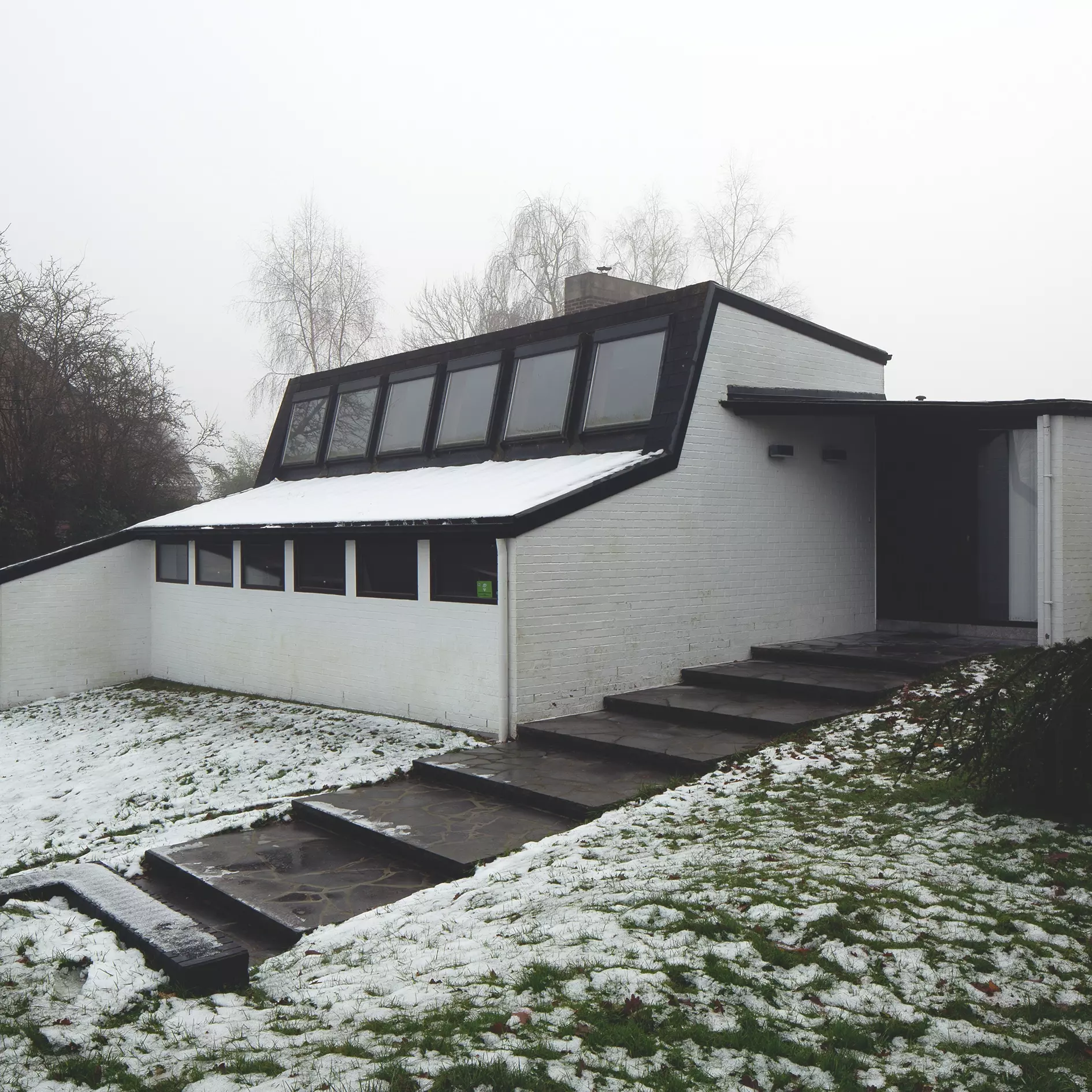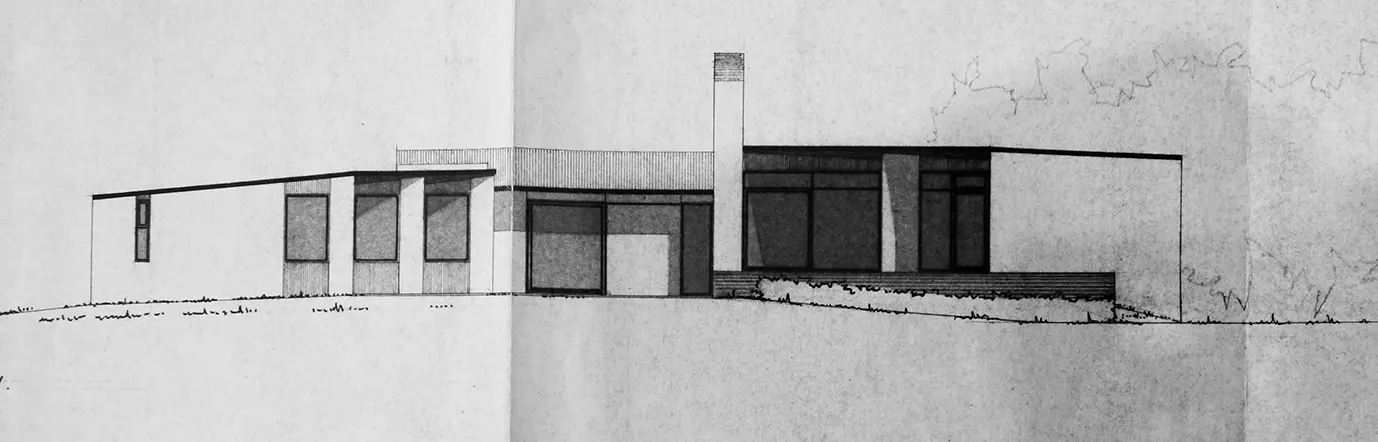 Quelques années plus tôt, l'architecte avait transformé la maison réalisée par Jacques Dupuis pour l'artiste Camus. La maison à Soignies partage, de fait, avec l'architecture de Dupuis un ensemble de traits communs : l'étalement horizontal, brisé seulement par quelques lignes verticales ; les légères variations de hauteurs engendrées par les toitures obliques ; le registre analogue de matériaux.