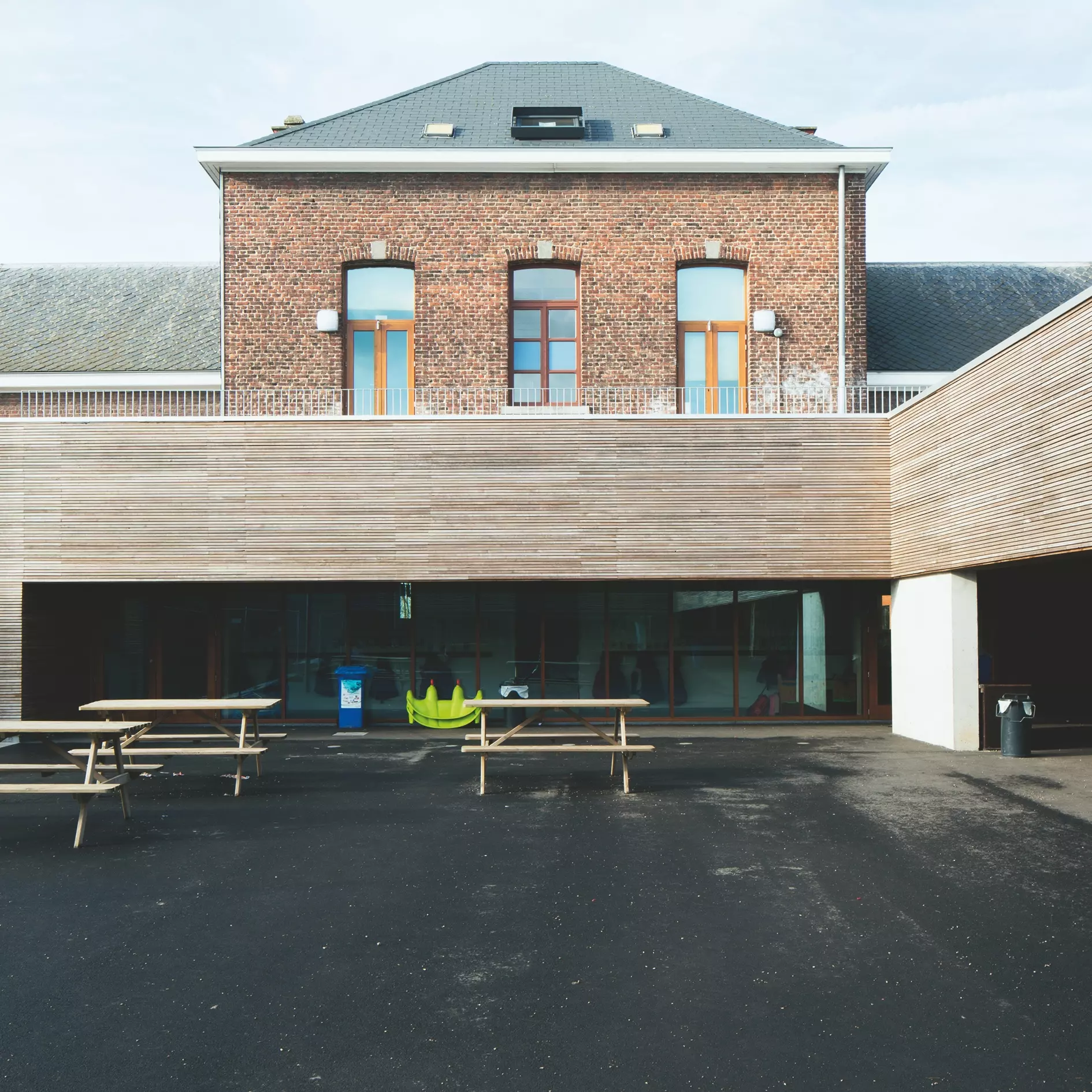 Les réalités contemporaines amènent le maître de l'ouvrage à devoir disposer de neuf classes et d'une salle polyvalente pour assurer l'accueil des enfants en maternelle et en primaire. Une partie du programme est accueillie dans le bâtiment principal préservé et rénové. À l'arrière, les annexes sont remplacées par de nouveaux volumes en bois et verre, privilégiant la transparence et la relation avec l'extérieur.