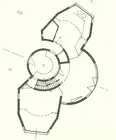 Le bâtiment adopte un parti vertical afin d'être visible dans le contexte d'un terrain en pente couvert d'arbres fruitiers. Le plan adopte une organisation mécanique : plusieurs volumes aux formes arrondies s'emboîtent autour du tambour abritant l'escalier central.
