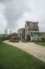 Depuis le sud, la maison présente une composition symétrique, avec une dilatation du séjour sous forme de tente. L'architecture organique austère accorde la priorité aux espaces, à la circulation et à la lumière. Ludiques, les toitures évoquent des ailes protectrices. L'ensemble dégage un caractère expressif, sculptural et énigmatique qui a surpris certains riverains lors de la construction.