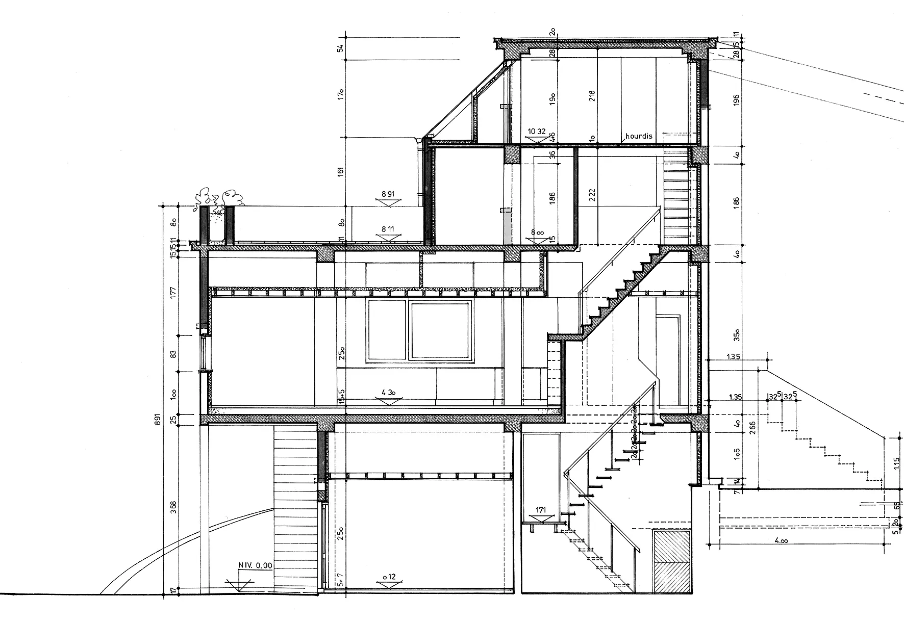 À l'initiative de ce projet, un jeune couple désireux de créer de l'espace et de la lumière à partir d'un lieu existant où tout serait encore possible. Ce lieu, il le trouve dans la carrière de Chercq, au sein d'un ancien concasseur de pierres. De l'infrastructure, dont l'activité a cessé depuis longtemps, reste la carcasse de béton et de briques, ainsi que la rampe de circulation des wagonnets. La structure (dont les poutres béton présentent une section de 1 x 0,80 m) s'érige sur 12 m de haut, découpés en cinq plateaux. L'ensemble du gros œuvre est là, rien n'est à démolir. L'intervention de l'architecte s'avère minimale : il s'agit d'organiser intelligemment le programme au sein d'un volume peu pratique à l'usage. Ce à quoi répond le projet, sans modification de l'apparence extérieure. Le séjour occupe l'étage central et profite d'une vaste terrasse ouverte sur le paysage alentour. Les niveaux inférieurs reçoivent les techniques ; les niveaux supérieurs reçoivent les chambres. Le confort des occupants est assuré par un chauffage pulsé en faux plafonds et par une isolation intérieure, complétée par une pompe à chaleur air-air pour la transformation d'énergie.