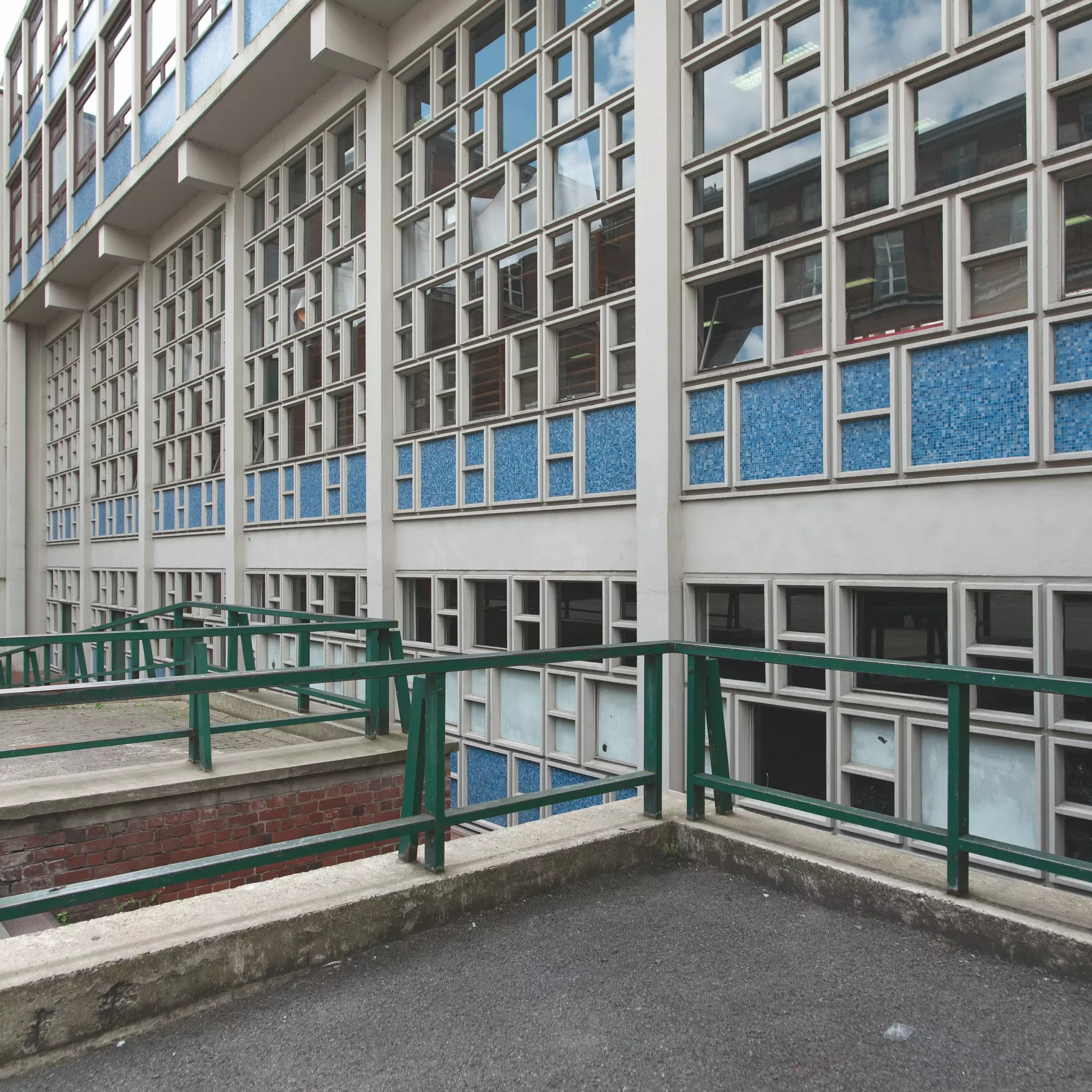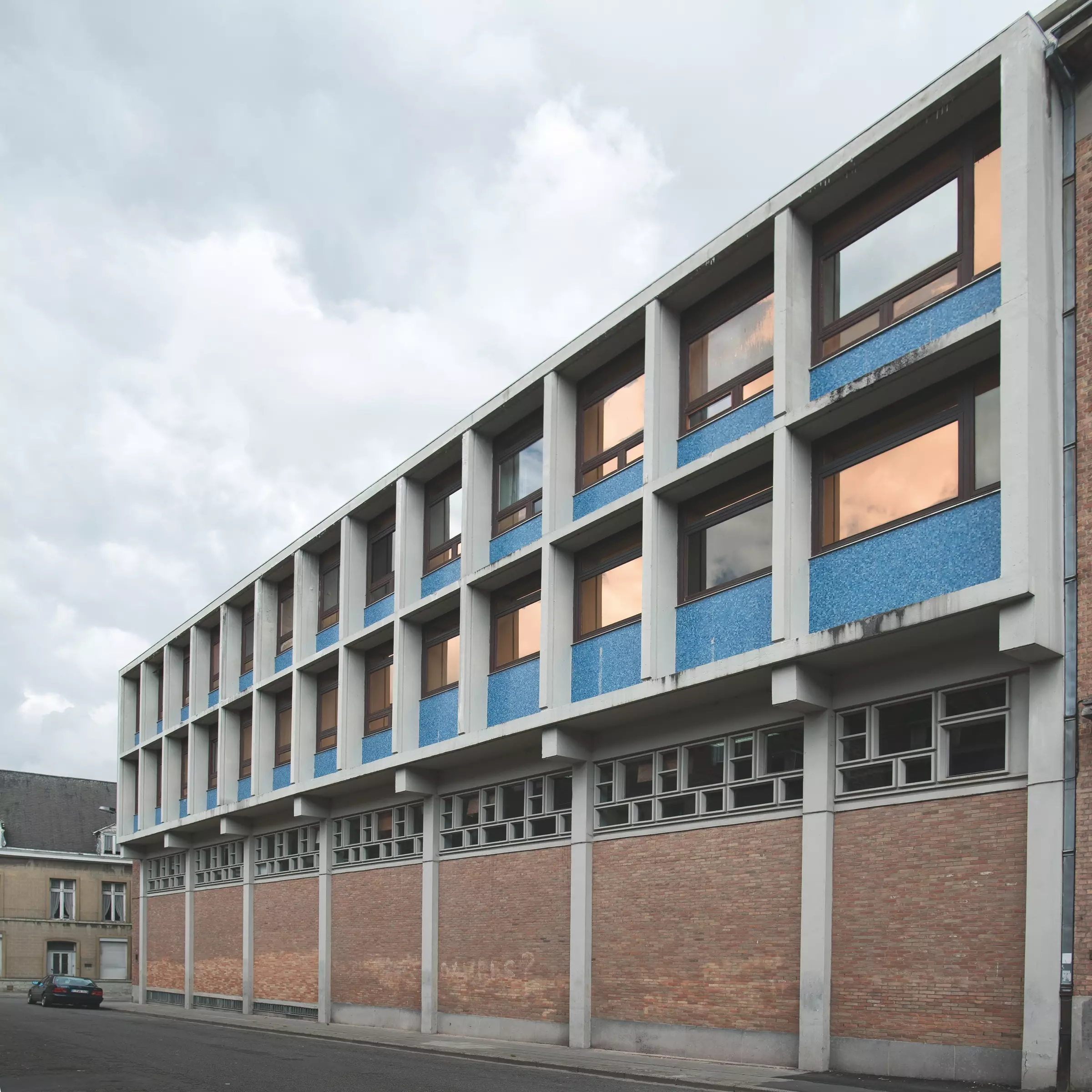 C'est en 1839 que s'implante le collège des Jésuites à Tournai, dans l'ancien couvent des Carmélites. Depuis, l'établissement ne cesse de s'étendre et de se moderniser, passant de cent quatre-vingts élèves en 1842 à près de trois cents élèves en 1914, jusqu'à six cents en 1963. En 1957, devant l'augmentation conséquente du nombre de collégiens, et à la suite du projet d'ouverture de trois nouvelles sections (Latin-mathématiques, Latin-sciences et Scientifique B), il est envisagé d'équiper les locaux de laboratoires modernes, de salles de dessin et d'éducation physique. En 1961, une opportunité se présente : les maisons de la rue Blandinoise sont à vendre. Leur rachat permet au collège de s'étendre sur la totalité arrière de l'îlot. C'est l'architecte Winance, collaborateur d'Henry Lacoste pendant deux années et ancien élève du collège, qui est chargé d'établir le projet de l'extension. Le nouveau bâtiment est composé, à l'entresol, d'un garage à vélos et de deux salles d'étude et, au rez-de-chaussée, de la salle de gymnastique (30 x 16 x 6 m) ainsi que de w-c et douches. Aux premier et deuxième étages, l'architecte regroupe des salles de classe reliées par un couloir raccordant, via quelques marches, les niveaux des classes qui préexistent rue Blandinoise. Ce nouveau bâtiment permet, de par son implantation et la démolition de la Chapelle des congrégations, d'aérer l'espace de la cour et d'apporter de la luminosité bienvenue aux locaux d'enseignement.