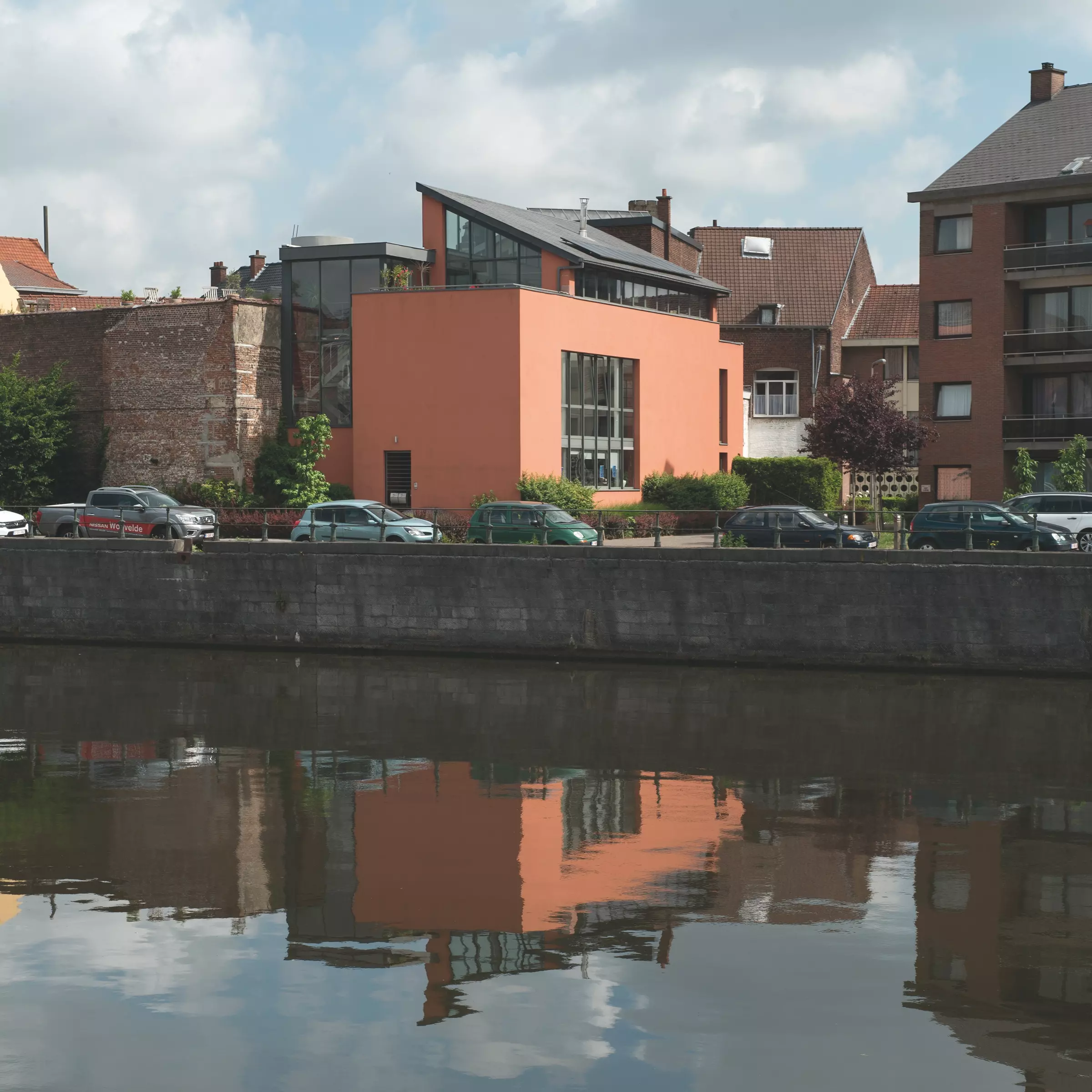 Le projet se niche au cœur d'un îlot d'habitats et de bâtiments industriels hétéroclites, des XIXe et XXe siècles, en partie déstructuré par la rectification des quais de l'Escaut en 1964. Créée en 1992, l'école « Danse et Compagnie » se sent rapidement à l'étroit dans les anciens établissements des « Cafés Hivre ». En 2002, l'architecte Béthume conçoit, à la place d'entrepôts vétustes, une extension du centre sur deux niveaux (salle de danse, atelier de confection des costumes), avec un appartement privatif au dernier étage. L'originalité de cette annexe repose sur sa forte muralité, le jeu de pleins et de vides, les décrochements et l'étagement des volumes imbriqués, ménageant plusieurs terrasses à leur sommet, dispositifs atypiques dans ce quartier historique de Tournai, mais pourtant bien intégrés. Les façades, dépouillées, mais colorées, sont percées de larges verrières tournées vers l'Escaut. Une annexe basse, prévue côté quai, non réalisée, aurait permis de fondre encore davantage les volumes dans le bâti existant.