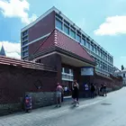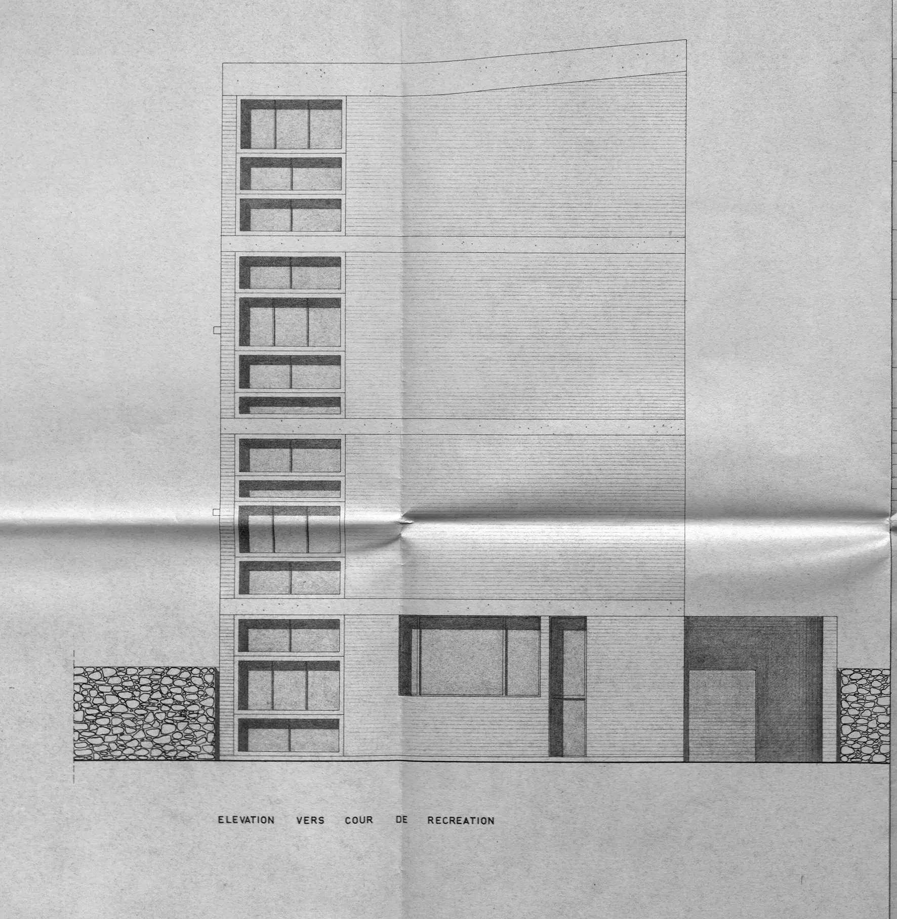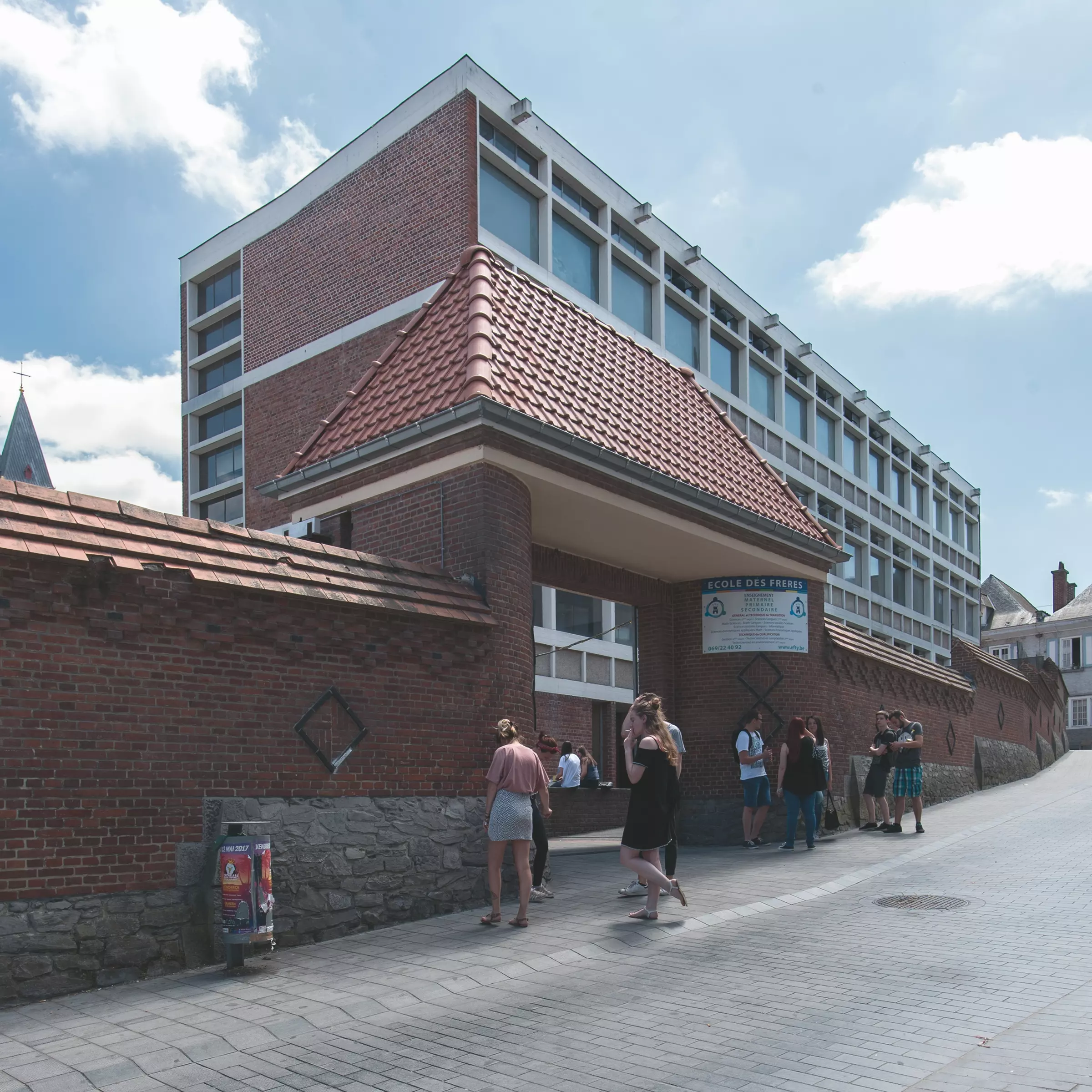 En 1960, l'architecte J. Cailliau conçoit une aile de l'école des Frères, dont la fonctionnalité transparaît jusque dans la structure en béton. Les façades, proportionnées en « trame écossaise », soulignent l'esprit moderniste du volume pur en révélant « les génératrices de la forme ». Les modénatures de béton, avec leurs remplissages de briques, créent des proportions raffinées et de larges diversités d'ouverture vers l'extérieur. L'orientation nord-sud du volume protège les classes de la surchauffe en leur offrant une lumière diffuse. Les circulations colorées de faïences, baignées d'une luminosité abondante, s'articulent autour de la cage d'escalier en béton brut. À chaque étage, cette axialité verticale offre un paysage séquencé sur la ville de Tournai et ses alentours.