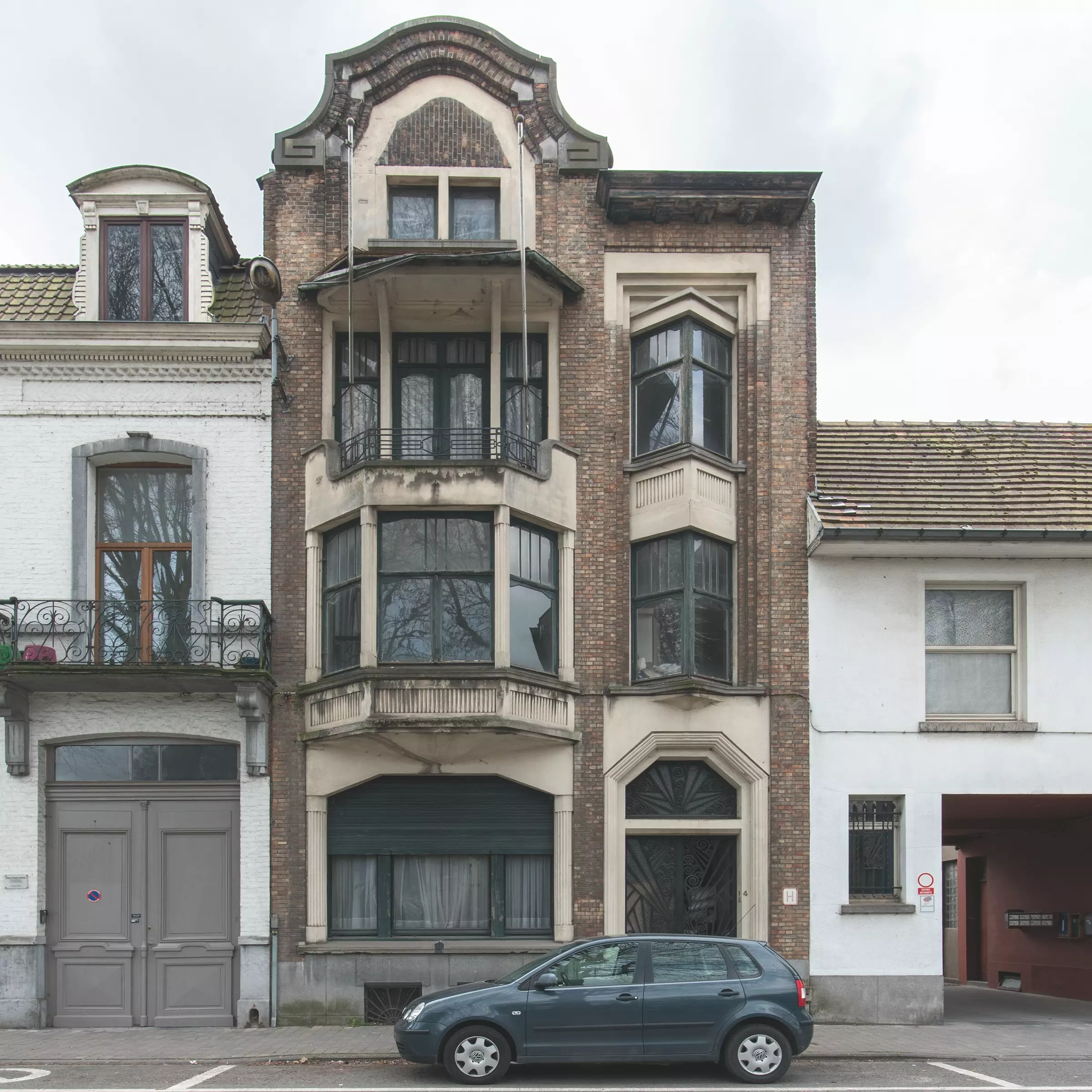 La façade Art déco, l'une des plus abouties de Tournai, est caractérisée par des saillies et des retraits qu'animent des rythmes binaire et ternaire. Ceux-ci sont adoucis par des déclinaisons de courbes irrégulières, par les décors en méplat du balcon ou par la modénature des baies à angles coupés. Le jeu des matériaux mêle la pierre bleue, le métal, le béton et les briques (dans des teintes allant du rouge au gris perle). Les boiseries des châssis sont d'origine. Les grilles de la porte d'entrée et des soupiraux en fer forgé sont ornées de soleils rayonnants, accompagnés de lignes droites, de cercles et de courbes. à l'intérieur, dont le plan est traditionnel, le même traitement est appliqué à la rampe d'escalier.