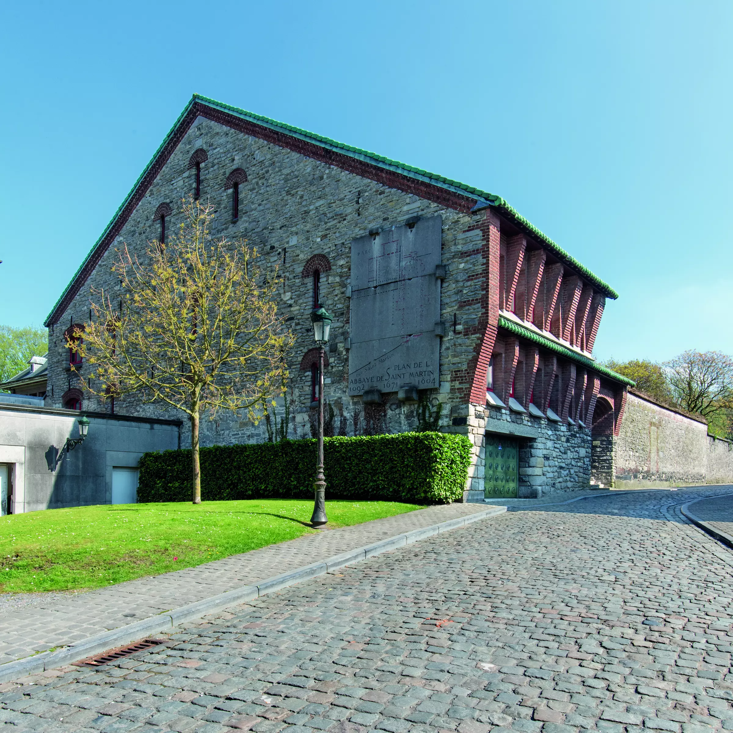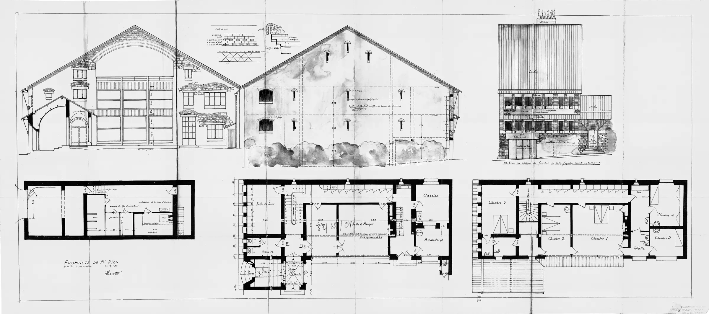 Conservateur du musée des Beaux-Arts, le couple Pion-Leblanc est propriétaire de l'ancienne abbaye se trouvant face au bâtiment de Victor Horta. En 1935, il s'adresse à Henry Lacoste pour transformer et agrandir celle-ci, en y intégrant, notamment, l'atelier du peintre. L'architecte conserve les murs en pierre de Tournai de l'ancienne construction, qu'il remodèle en une surprenante évocation d'un passé moyenâgeux imaginaire, austère et éminemment expressif. La façade principale, côté rue, présente un soubassement massif en pierres de réemploi grossièrement taillées (certaines provenant de l'abbaye Saint-Martin), dont l'irrégularité est soulignée par de larges joints creux. Cette partie est surmontée de deux niveaux de hautes consoles en briques rouges, entre lesquelles sont placées des fenêtres étroites et profondément enfoncées dans l'épaisseur du mur. Le rythme serré des consoles, rappelant des mâchicoulis, contribue à l'impression de fermeture de la maison. À l'inverse, les ouvertures de la pièce de séjour, située en surplomb, permettent d'admirer un grand jardin. Au même niveau, l'atelier du peintre est baigné d'une lumière de qualité grâce à une large baie vitrée. Attirant le regard du passant, la porte d'entrée et la porte de garage en vantaux (confectionnées dans l'atelier familial) sont en bois recouvert de cuivre. Une grande plaque les accompagne, faisant apparaître un plan de situation de l'ancienne abbaye. Au sein de la maison, l'architecte a dessiné plusieurs placards de rangement selon son esthétique propre, pour permettre à la famille de bénéficier du maximum d'espace de vie.