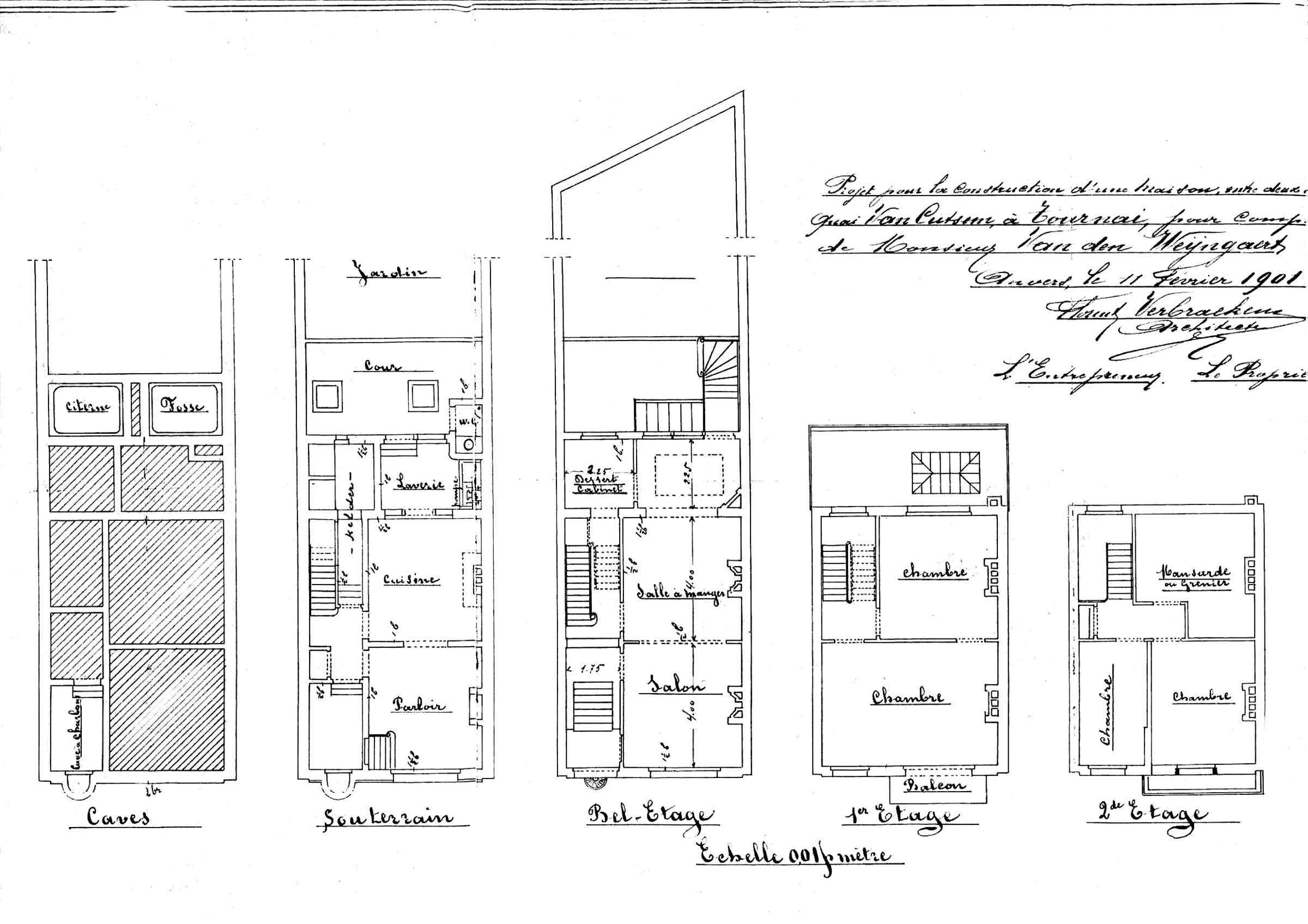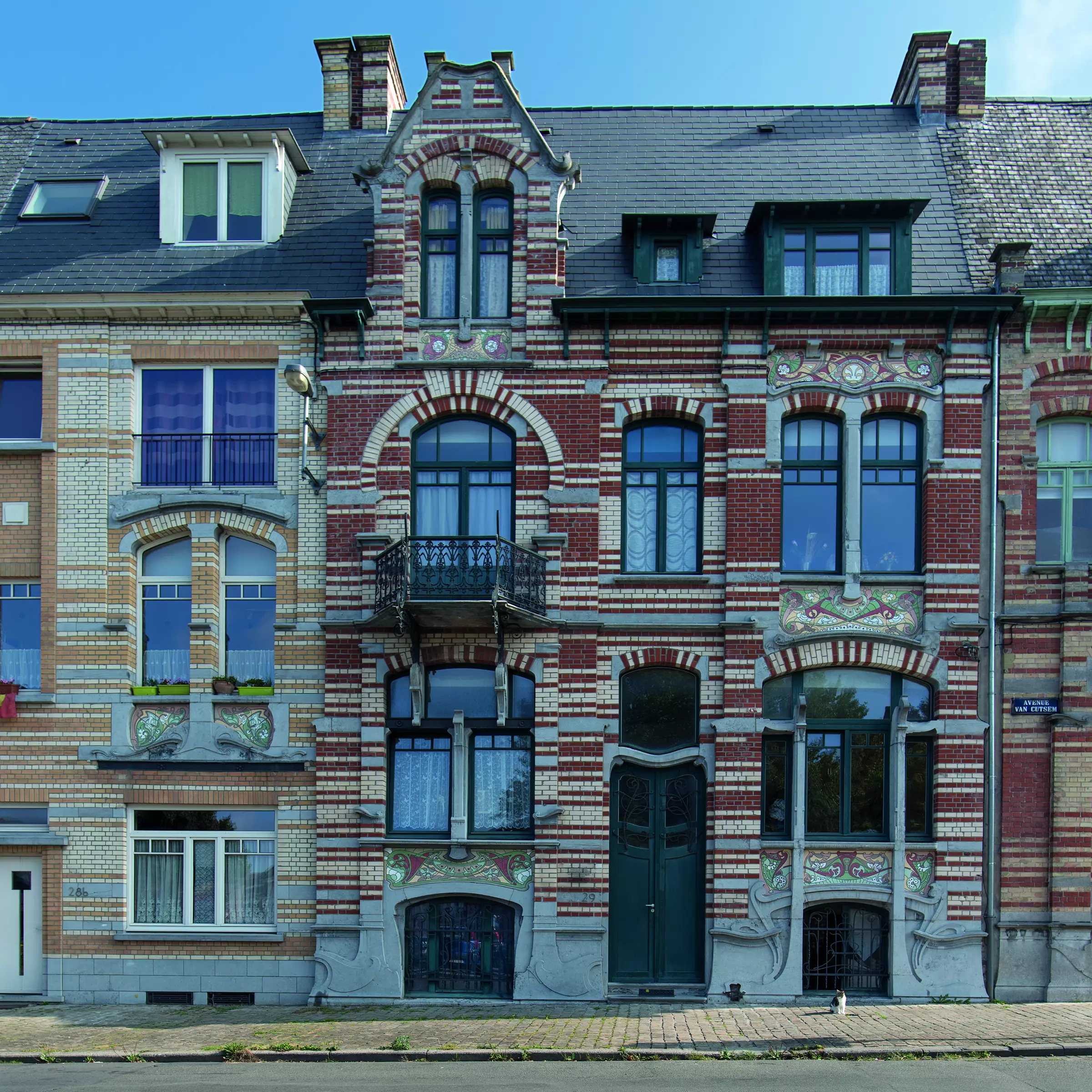 Édifié aux débuts des années 1900, le quartier de la gare regroupe plusieurs belles bâtisses marquant son ancrage dans le nouveau siècle. Celles-ci sont les œuvres de quelques architectes belges de renom, sollicités par des autorités communales admiratives des grands chantiers menés dans la capitale. Le long de l'avenue Van Cutsem, on trouve ainsi des habitations Art nouveau comme le n° 12 (1901) de l'architecte Verbraeken, dont seules les ferronneries et la fenêtre d'imposte restent intactes aujourd'hui (porte d'entrée remplacée et sgraffites effacés) ; ou les n° 17 (1903), 18 (1902) et 19 (1903) de l'architecte Winants, caractérisés par leur travail de charpenterie et de menuiserie, et, particulièrement pour le dernier, par ses arcs outrepassés, ses beaux sgraffites et son étonnante mansarde arrondie. De l'autre côté du parc, le long de l'avenue des Frères Haeghe, on remarque le n° 25 (1903) de l'architecte Francis Strauven, apparemment dessiné par son frère ; le n° 28 (1908) de l'architecte De Guis, dans un style Art nouveau géométrique ; et les n° 29 et 30 (1909) de l'architecte Van de Kerkhove, dans une version plus stricte du style du précédent (dont il est alors probablement l'employeur). Enfin, les cinq maisons des n° 27, 28, 28b, 29 de l'avenue Van Cutsem et du n° 2 de la rue des Volontaires sont conçues en 1904 par Gustave Strauven, le plus intéressant et prolifique disciple de Horta. Cette série d'habitations se distingue des autres créations Art nouveau de Tournai par les fers forgés si caractéristiques de l'architecte, par ses huisseries, ses pierres taillées exceptionnelles et la signature inimitable du Bruxellois qui réalisa environ quatre-vingts maisons Art nouveau dans la capitale.