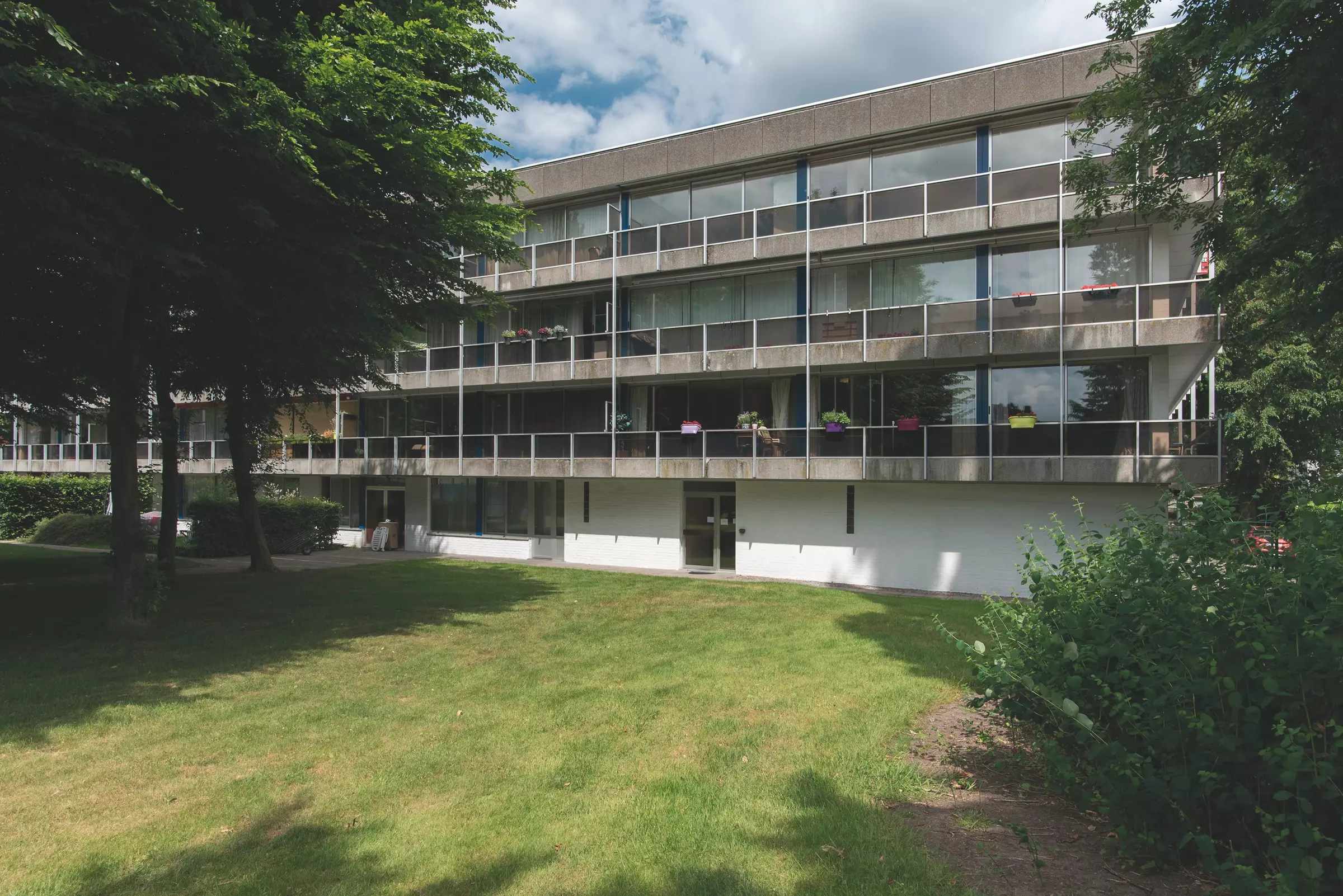 Implanté en bordure de ville, cet ensemble résidentiel s'étend sur un parc de 2 ha, formant l'angle de deux chaussées importantes. L'opération commence à la fin des années 1970 par la construction d'une barre de logements le long du premier axe routier, et de trois immeubles en plots indépendants vers le second, sur les cinq prévus initialement. La cessation d'activité de l'entreprise entraîne effectivement l'arrêt du chantier, sans que soit achevé le projet. Celui-ci ne verra son aboutissement qu'une vingtaine d'années plus tard, à la suite de la sollicitation de la jeune entreprise Devos par l'architecte Fournier. De l'une à l'autre phase, aucune différence n'apparaît autre que l'amélioration des critères d'isolation et quelques détails techniques. Nommées de A à F, les constructions présentent les mêmes gabarits compacts aux allures de cube ramassé, les mêmes balcons filant sur tout le périmètre, les mêmes compositions de façade superposant régulièrement les baies vitrées. On retrouve jusqu'au meneau traversant les étages et jusqu'à la brique peinte en blanc. Simples et pragmatiques, les plans sont à l'image de l'ensemble du projet, dont l'enjeu principal est d'offrir un maximum d'espace à chacun, tout en respectant une grande économie de moyen.