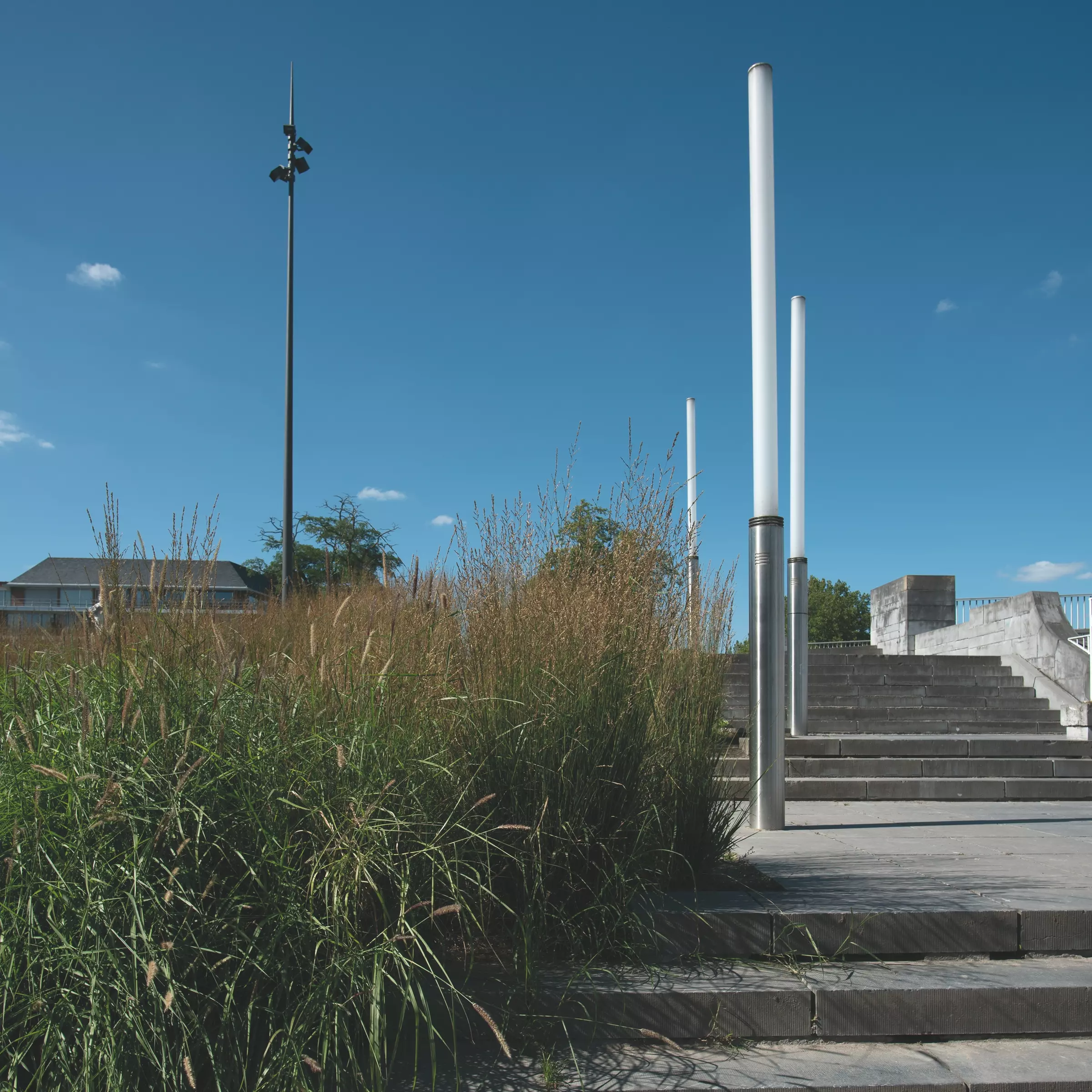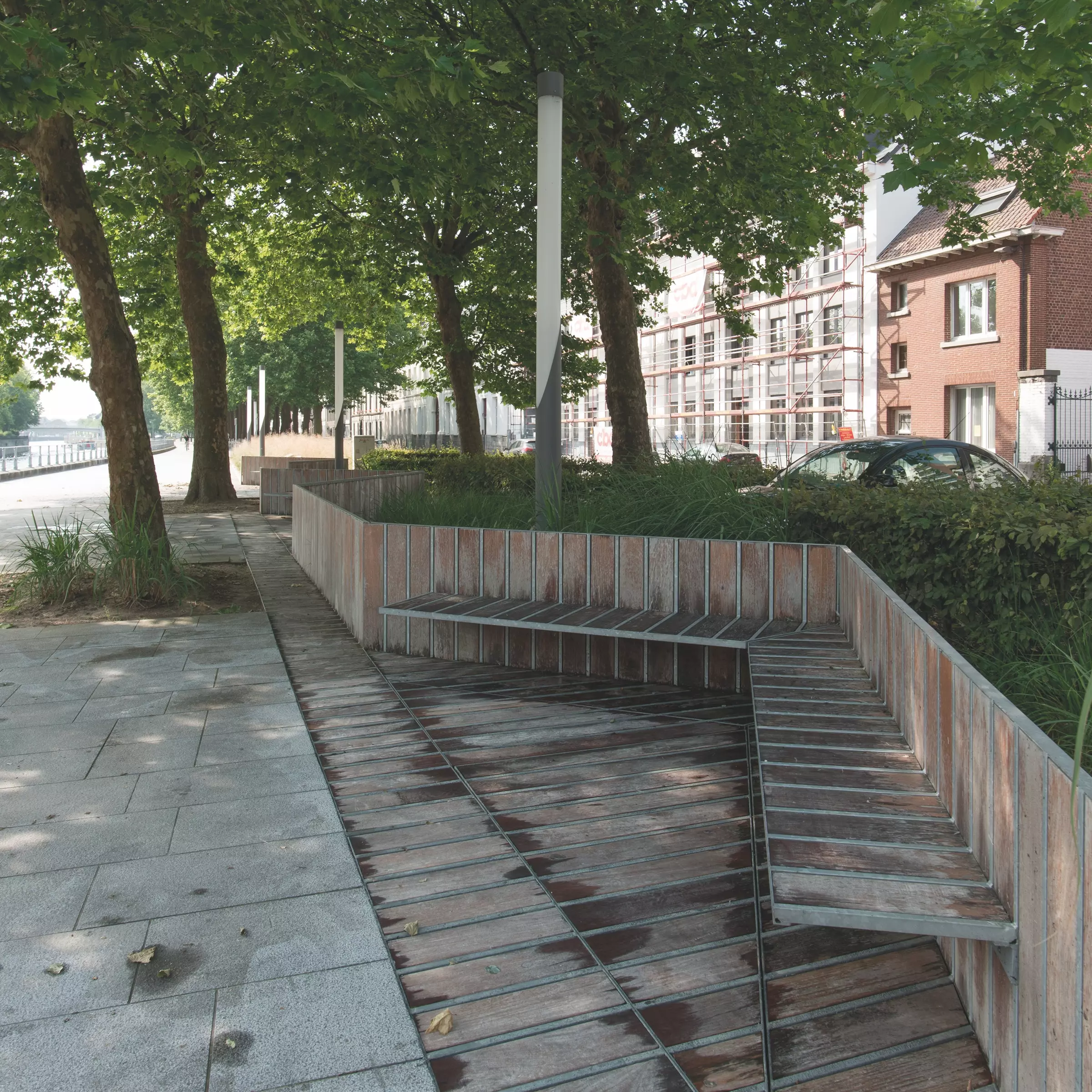 Faisant suite à la rénovation des quais Notre-Dame, l'aménagement des Salines pose une problématique légèrement plus complexe, compte tenu de l'absence de commerces et animations sur cette portion du fleuve. Comment faire vivre un lieu en l'absence de toute structure « attractive » ? La réponse apportée par ANMA est celle de « l'ultra-contextualité », soit la mise en valeur du génie du lieu au travers de ses qualités intrinsèques. Ici, ces qualités ne sont autres qu'une position entre le centre-ville et le fleuve, et plus précisément entre des maisons patriciennes du XIXe siècle et un vestige de l'époque médiévale (le pont des Trous). Partant, les architectes déploient trois bandes parallèlement au cours d'eau, chacune correspondant à un type de déplacement et identifiée par un matériau : le trafic automobile sur les pavés anciens, la promenade piétonne sur la pierre bleue, la pause contemplative sur le lattage de bois. La proposition présente un découpage traditionnel des espaces dédiés et une dissociation claire des aménagements, le dernier assumant son statut de « mobilier » par un aspect léger et une silhouette articulée. Aux extrêmes, deux places minérales commencent ou terminent la promenade. Toutes deux très simples, la première est agrémentée d'une aire de pique-nique réalisée dans l'association bois-acier et la seconde, réalisée par l'artiste Saulnier, remplace les trappes des anciennes salines par dix-huit « pages » d'inox ciselées.