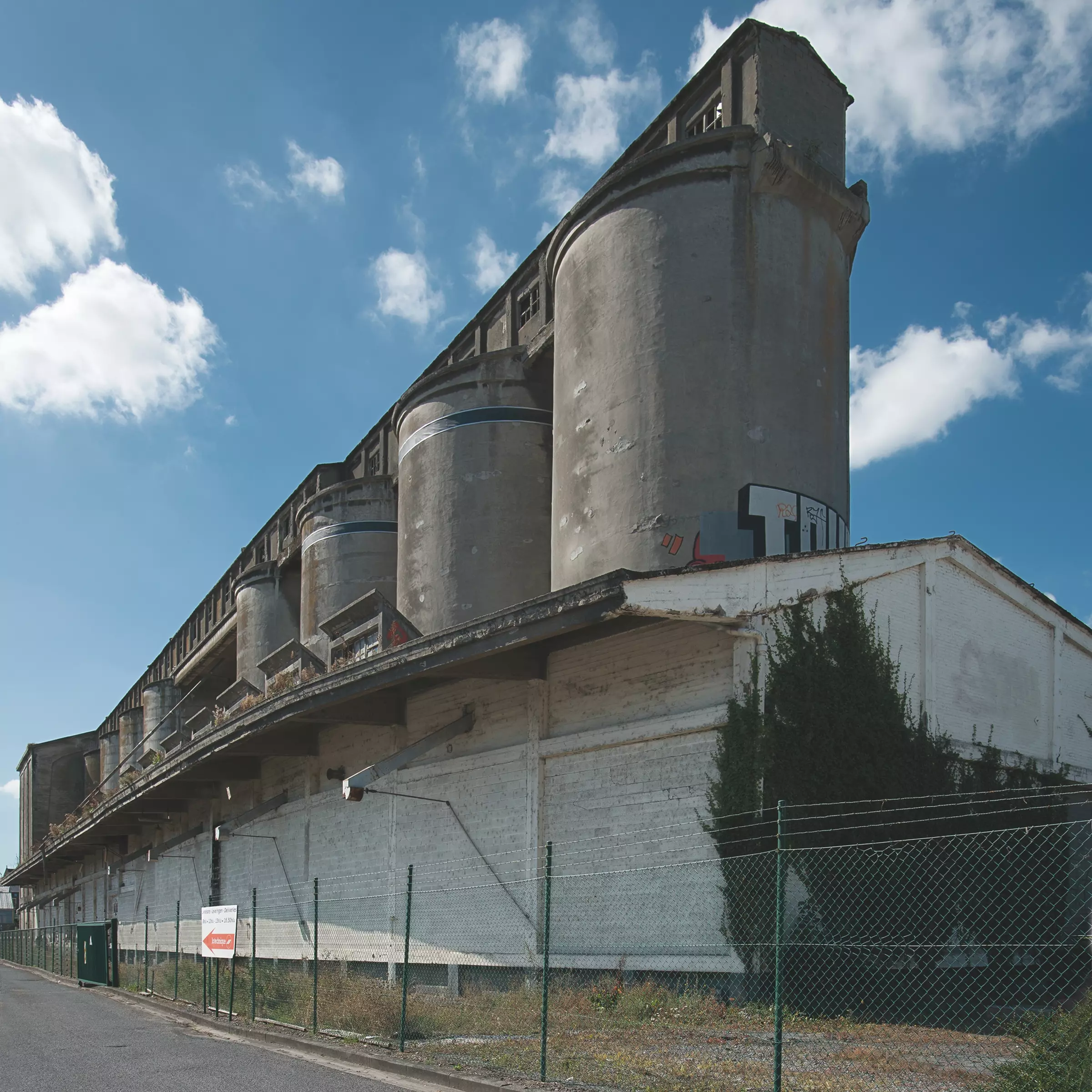 Les silos à ciment bordant l'Escaut constituent vraisemblablement la plus ancienne application existante de la technique du béton précontraint en Belgique.