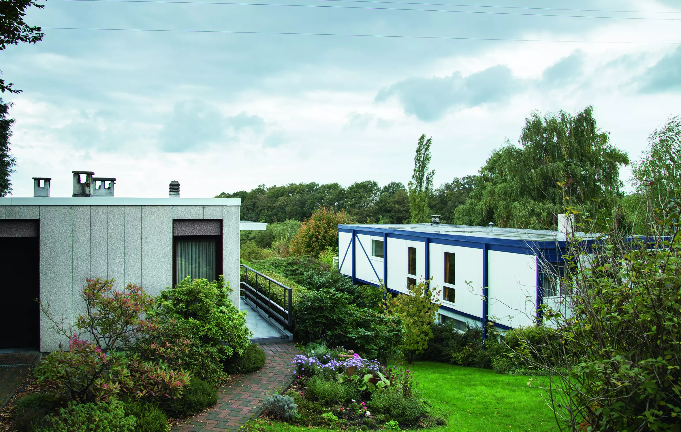 La maison voisine est réalisée par son associé Charles Carlier. La disposition est similaire, mais il s'agit ici plutôt de deux volumes parallélépipédiques superposés, celui au-dessous débordant en accentuant la projection vers les vues extérieures. La structure est en béton, matériau que Carlier privilégie dans ses projets, qui sont inspirés plutôt des maisons de l'architecte australien Harry Seidler, souvent publiées dans la presse spécialisée belge de l'époque. La façade vers la vallée se termine avec une loggia.