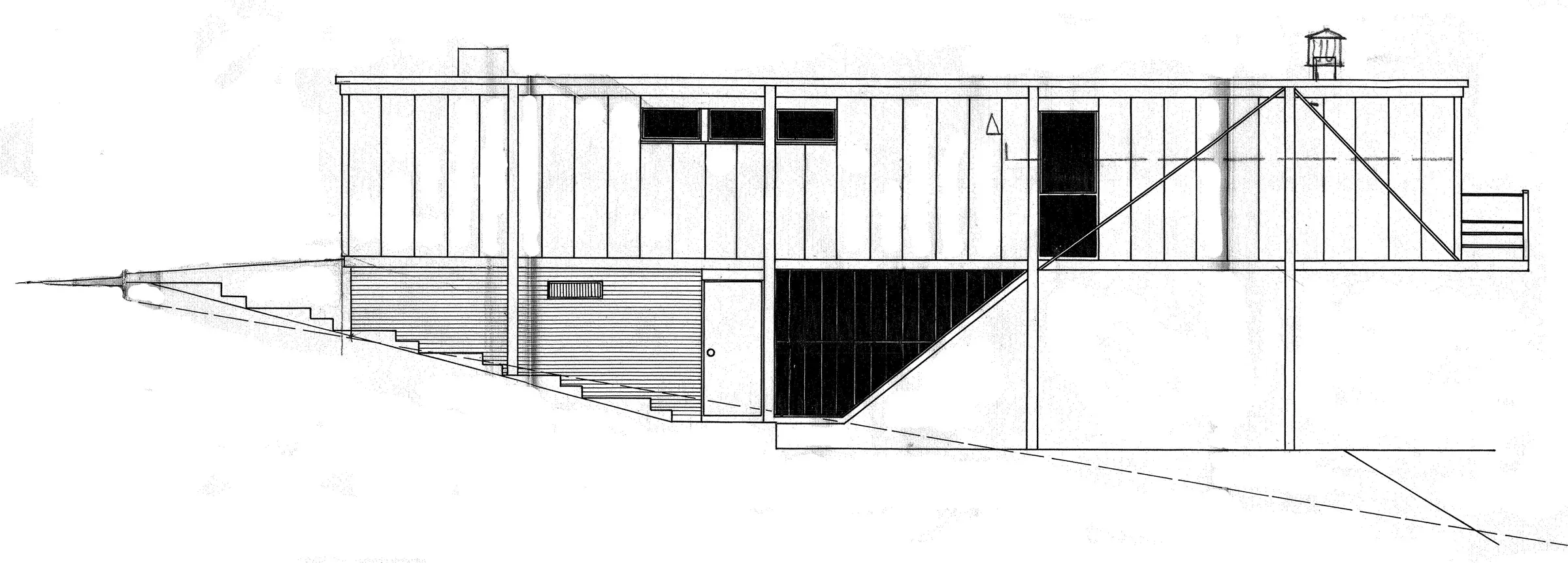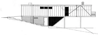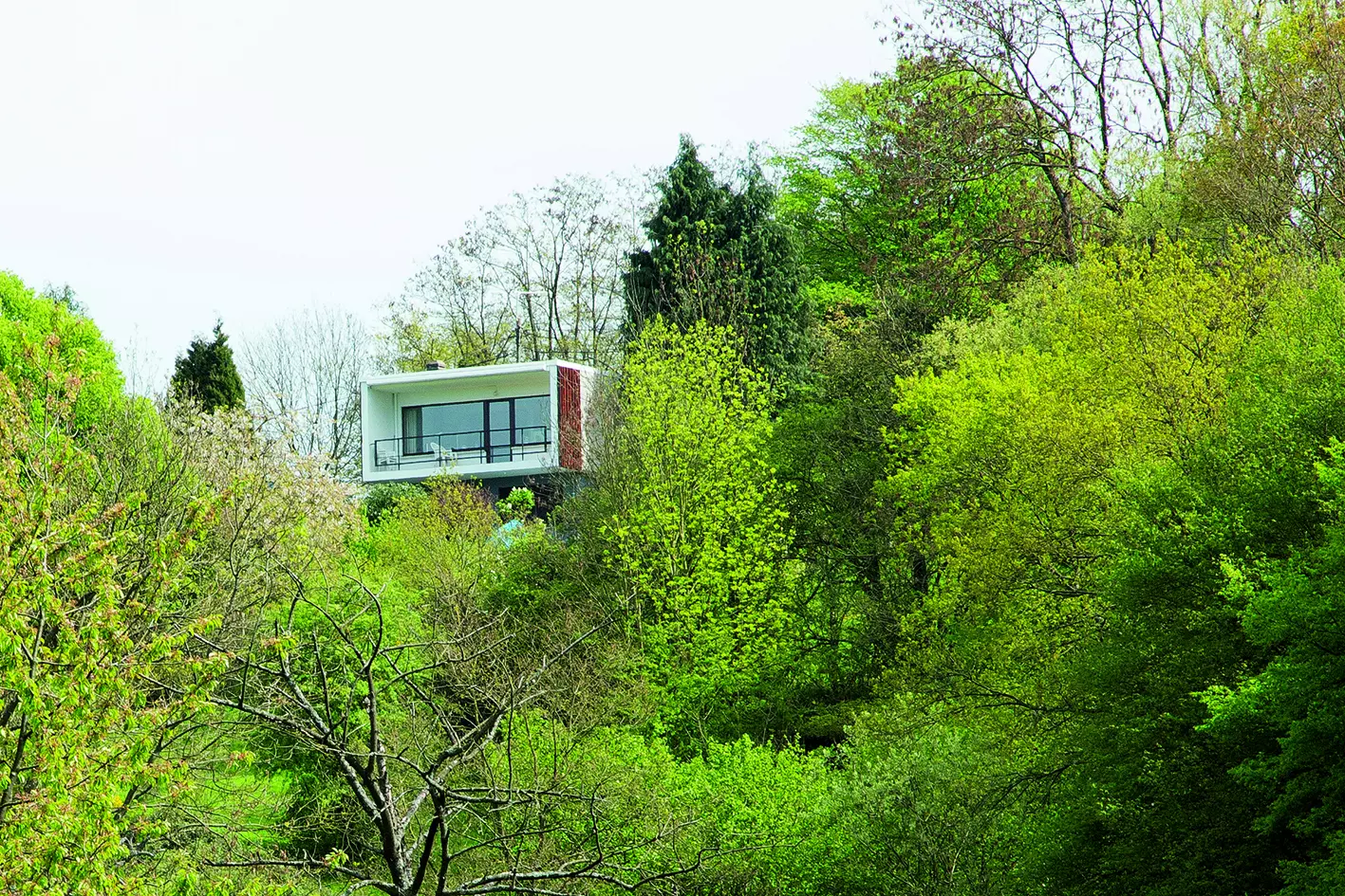 La construction est essentielle et rappelle les expériences américaines des Case Study Houses, mais surtout un célèbre projet de 1934 de Mies van der Rohe pour une Maison de verre sur une colline. La configuration intérieure est déterminée par le séjour disposé au bout du volume pour profiter de la vue ; la façade se termine avec une grande terrasse qui accentue la relation au paysage.