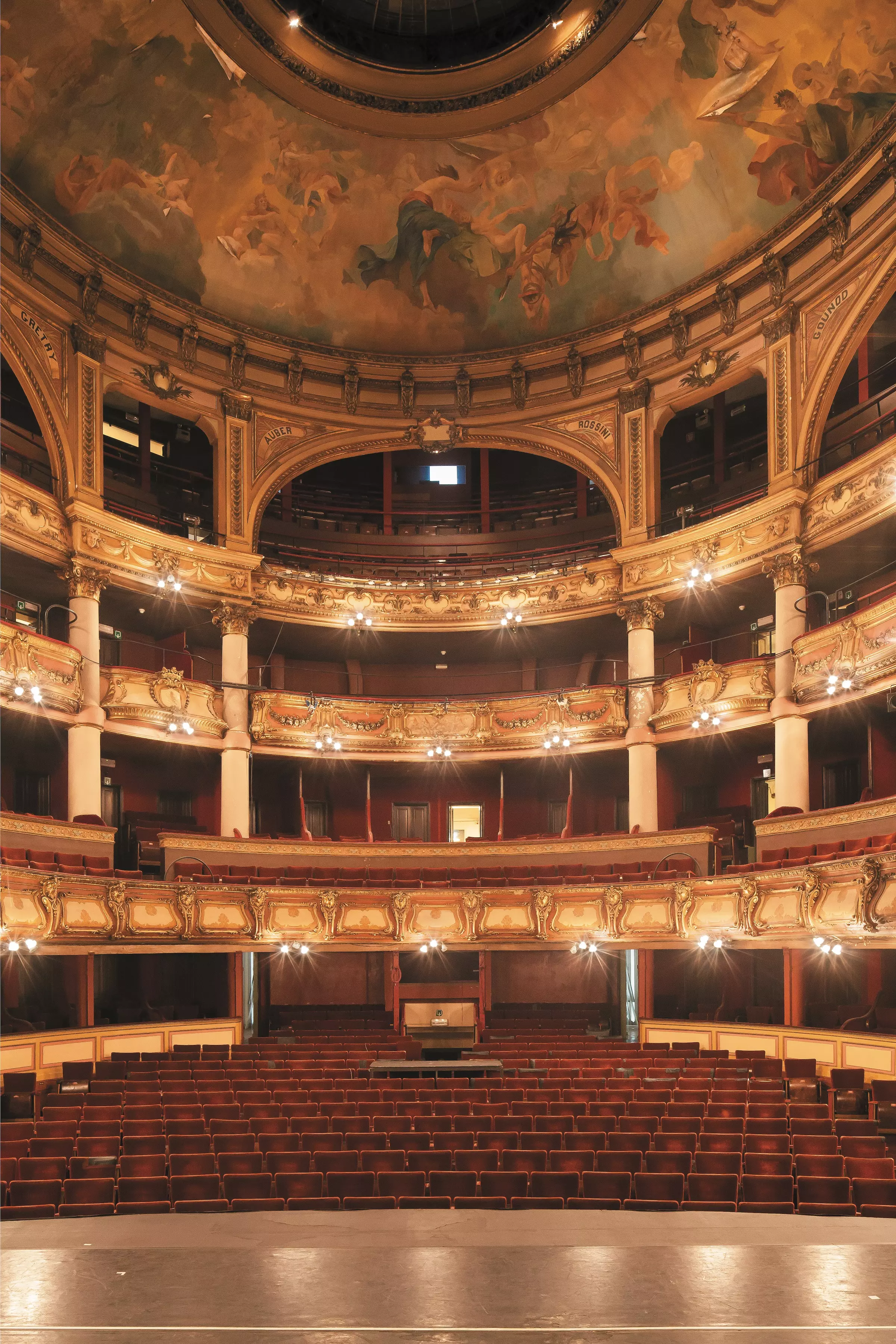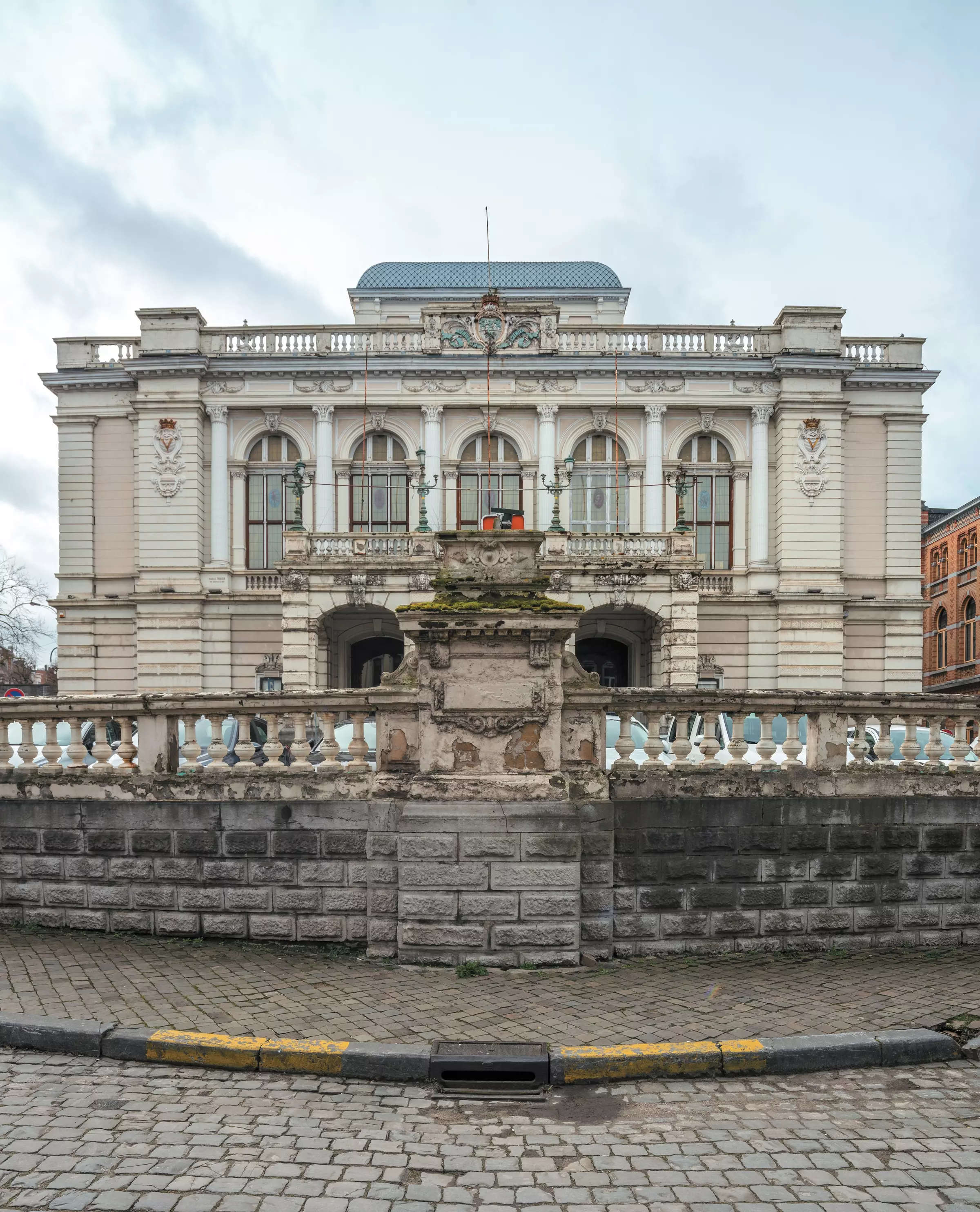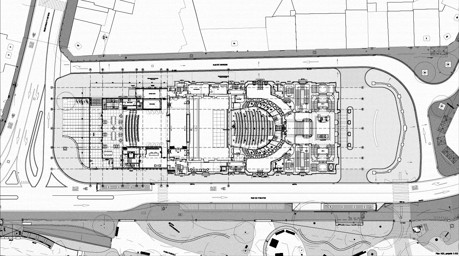 Dès le XVIIIe siècle,les Verviétois bénéficient de salles de spectacle et apprécient le ballet et lethéâtre. La « Bonbonnière » de la place Verte est devenue insalubreet trop exigu... L'administration communale décide, en 1888, de créer unecommission spéciale pour la construction d'un nouveau théâtre plus grand etconforme aux normes de l'époque. Six ans plus tard, un concours public estlancé, en deux épreuves. Trente soumissionnaires participent à la premièreesquisse déposée anonymement. Les cinq candidats retenus doivent rendre unprojet avec une salle de mille trois cents places assises, allant jusqu'aumobilier, décors, machinerie, chauffage et électricité ; et une estimationdétaillée ne pouvant dépasser 450 000 francs. Le marché est attribué en 1890 àl'architecte verviétois Charles Thirion, déjà très engagé dans la constructionde la cité lainière. Les travaux s'enchaînent dans le courant de la même annéeet sont inaugurés en grandes pompes à peine deux ans plus tard alors que lechantier se poursuit jusqu'en 1895 et coûtera finalement 700 000 francs. Ceflamboyant théâtre à l'italienne est la première salle de spectacle entièrementélectrifiée de Belgique. Ce temple culturel présente un plan quadrangulaire de1 620 m. construit en simili pierre, grès de Larochette et calcaire. L'ensembledonne l'aspect d'un bâtiment en pierre naturelle, orné de décors reflétant sonaffectation. Cette architecture, d'influence classique, est représentative dusouhait de la haute bourgeoisie d'accéder à un statut de grande ville par lebiais d'édifices importants. La même intention se poursuit à l'intérieur. Lesfinitions de la salle de spectacle et du grand foyer sont richement décorées.L'organisation du bâtiment empêche les différentes classes sociales de secroiser. Il y a des places pour voir et d'autres pour être vu. Après plus d'unsiècle de spectacles, une restauration complète s'impose, afin de rendre laprestance d'origine à ce chef-d'oeuvre, ainsi qu'une remise aux normesactuelles, amélioration du confort thermique et acoustique, renouvellement etapport de nouveaux outils scéniques, et la construction d'une extension en vued'augmenter et d'enrichir les possibilités de spectacle (1, 2).